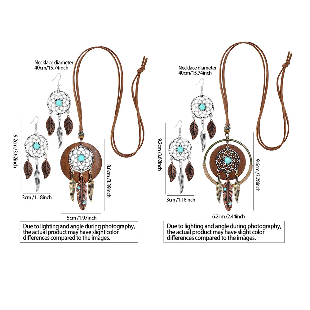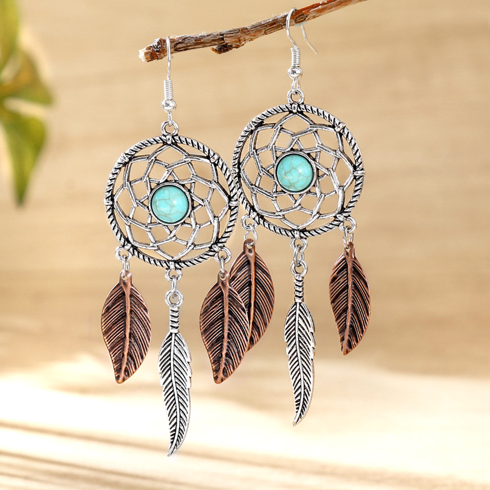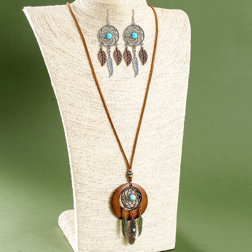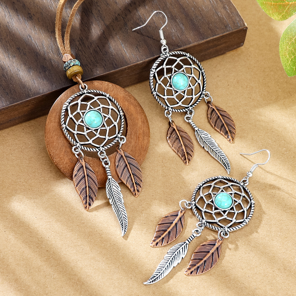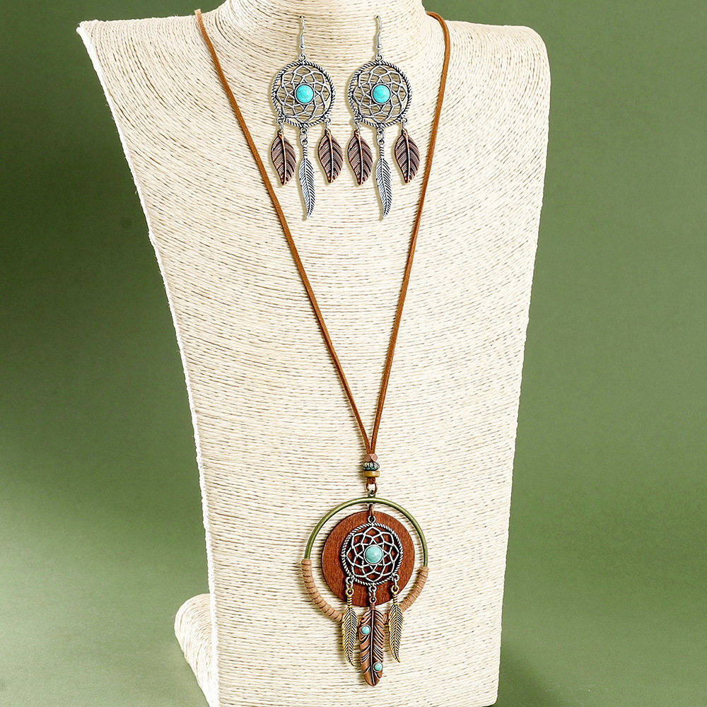 Cross-border hot spider web dream net feather tassel jewelry suit personality national style metal earrings necklace wholesale