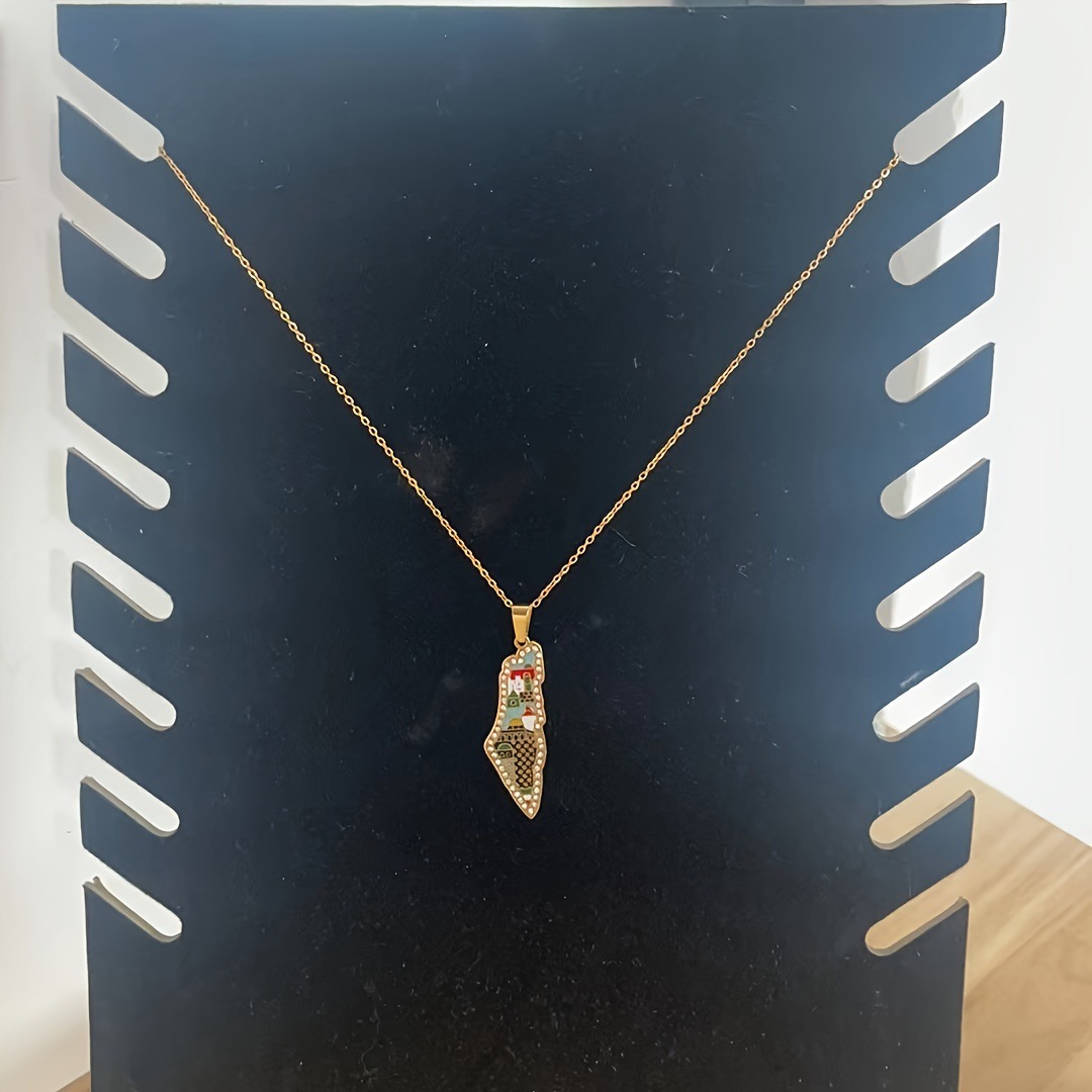 Cross-Border Hot-Selling Stainless Steel Scarf Flag Map Rhinestone Glue Men's Necklace European and American Popular Middle Eastern Jewelry