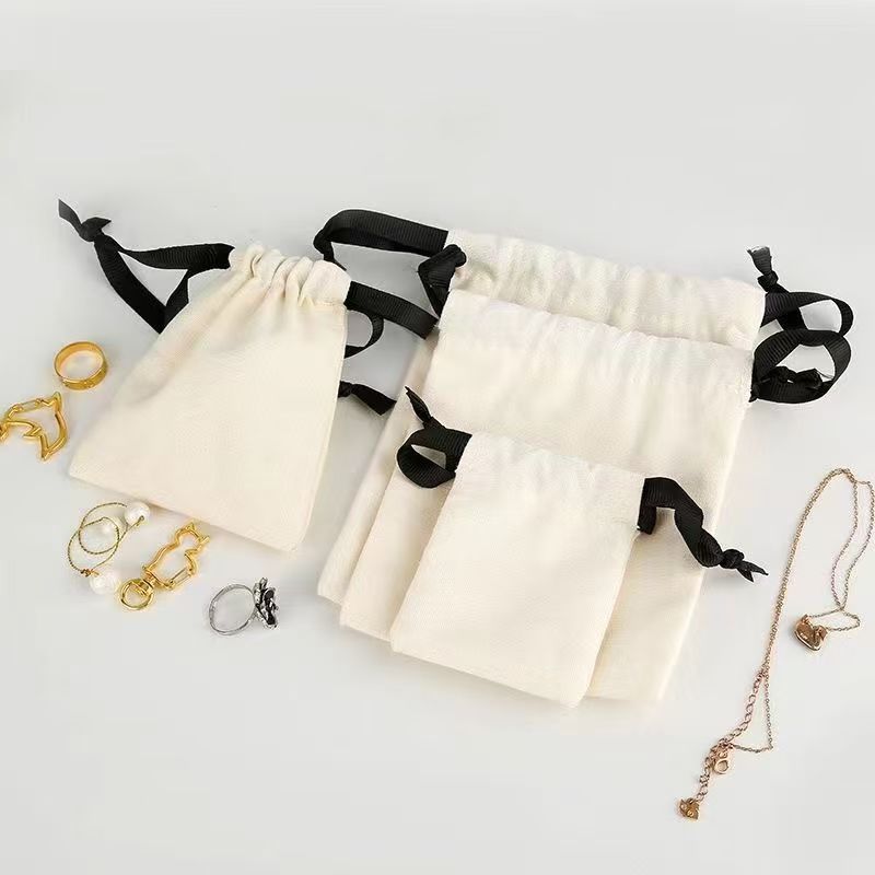 Small Jewelry Cotton Bag Dust-Proof Storage Bag Pure Cotton Drawstring Storage Jewelry Cotton Drawstring Flap Pocket Pants