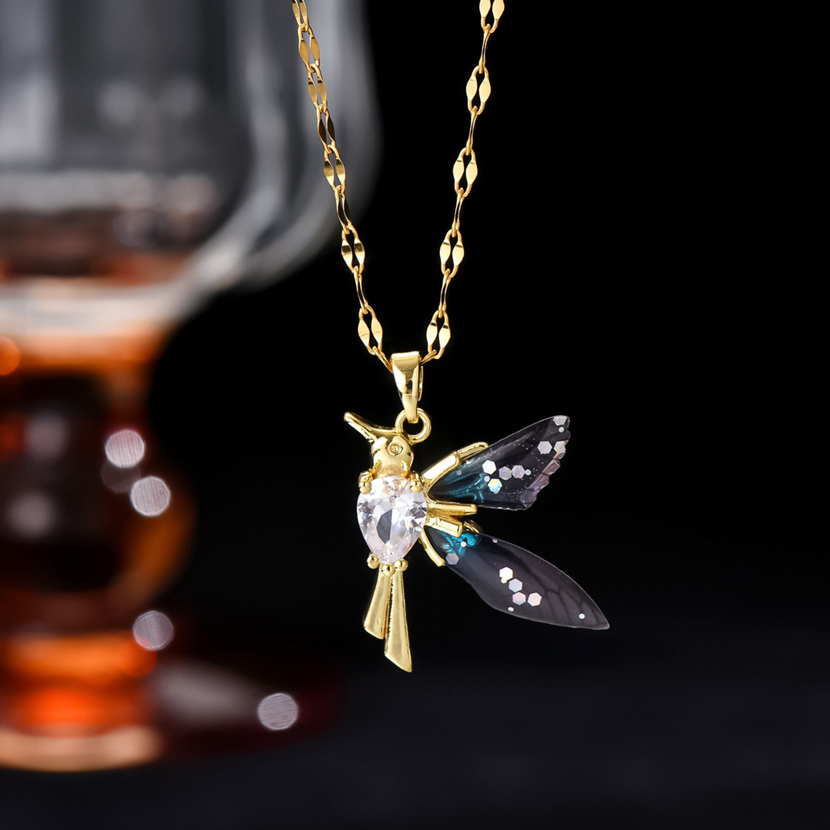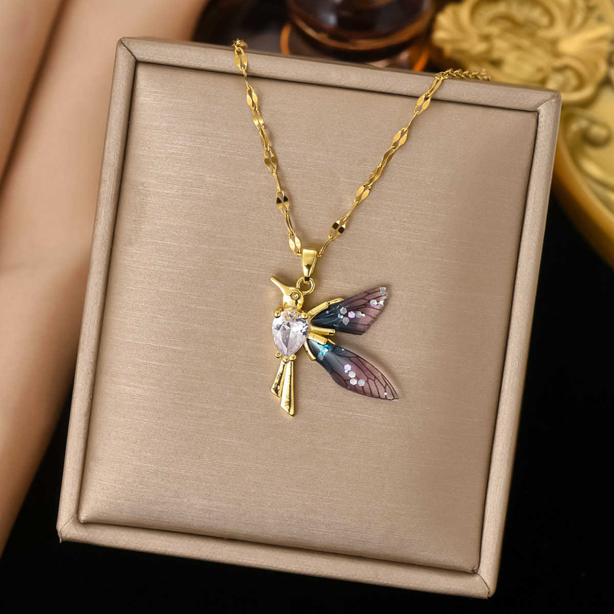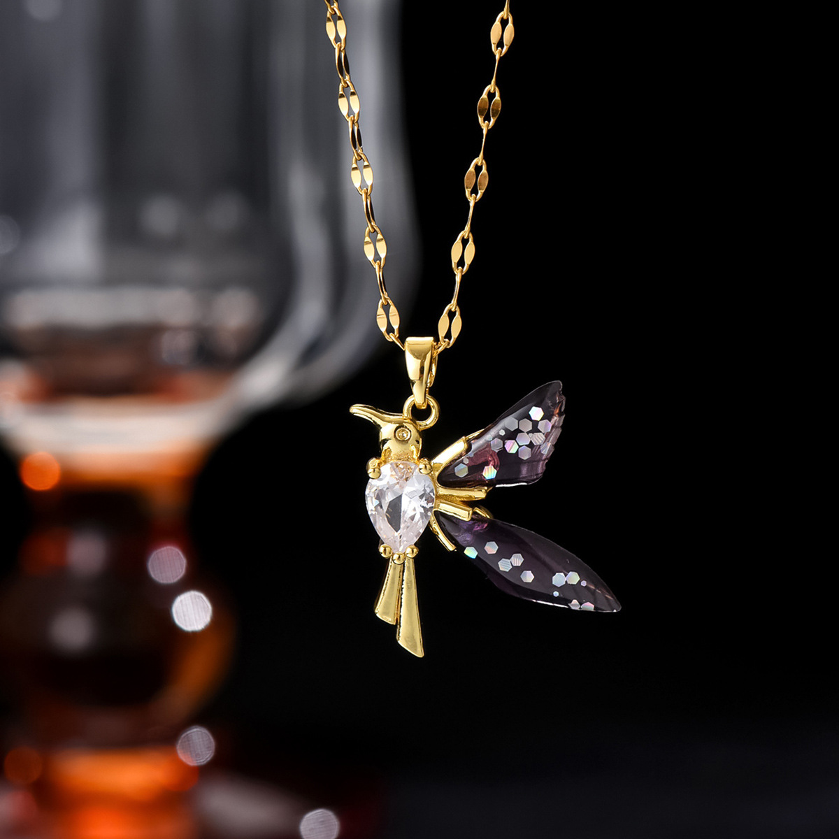 Cross-border Colorful Winged Bird-shaped Hanging Ornament Inlaid with Rhinestones with Shining Gold Thin Chain Personality Necklace