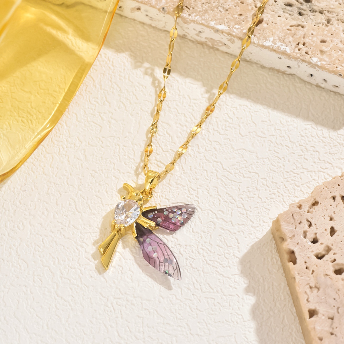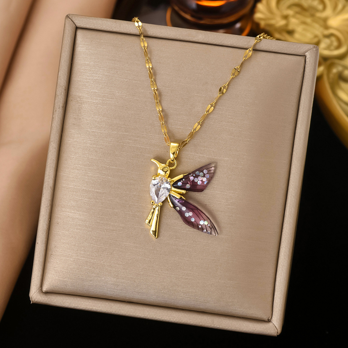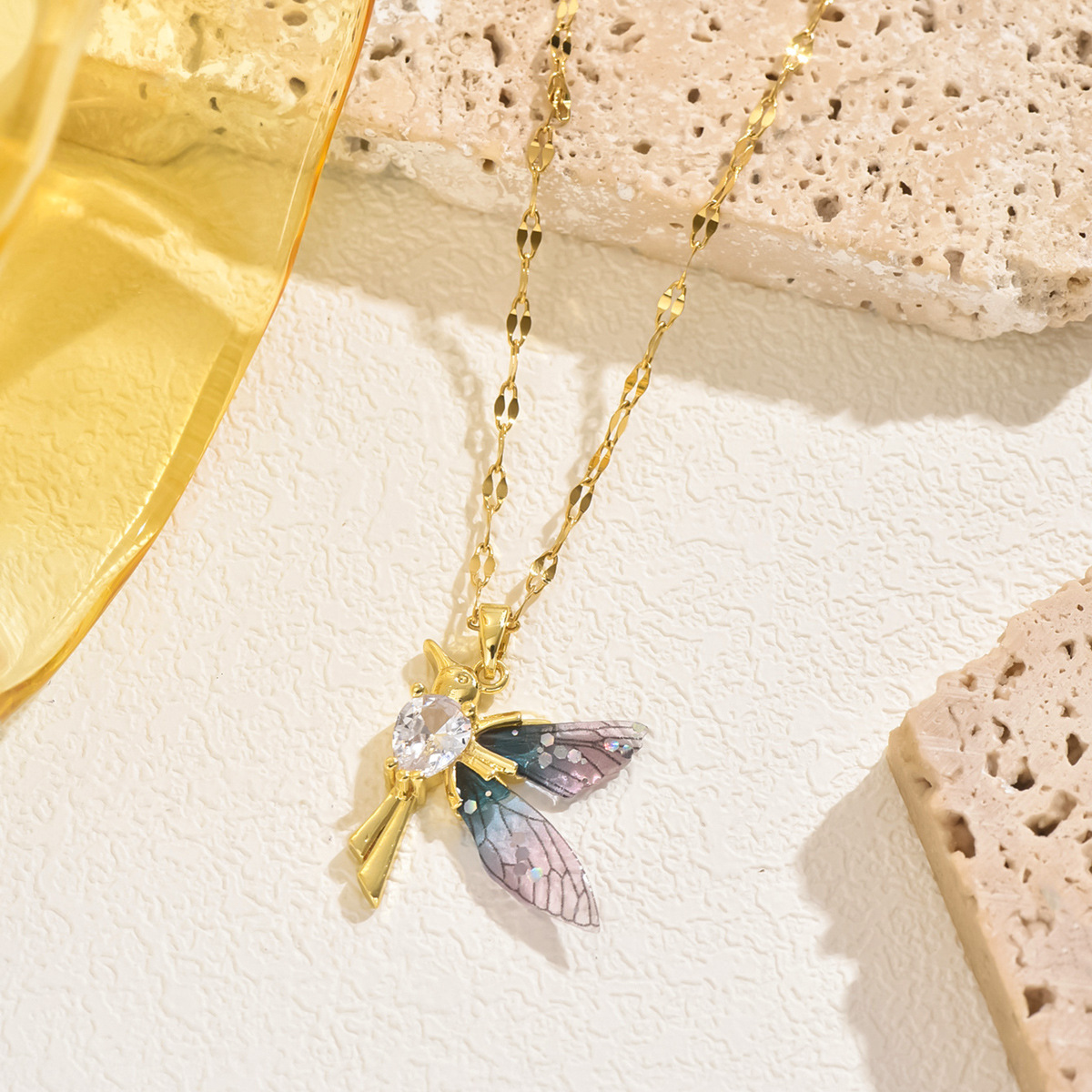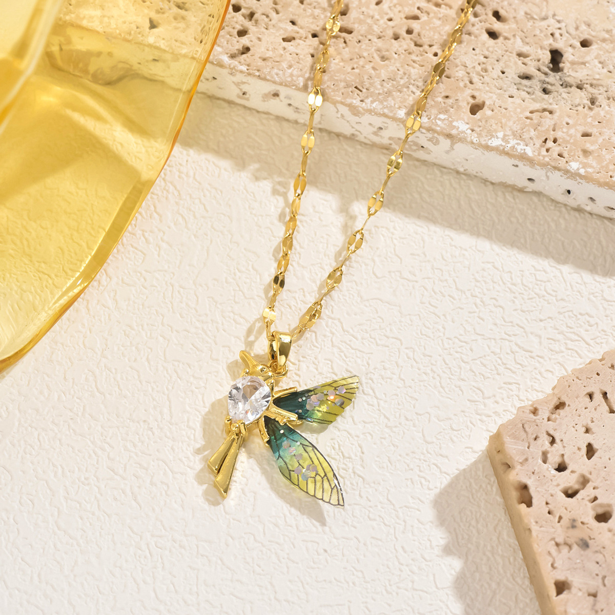 Cross-border Colorful Winged Bird-shaped Hanging Ornament Inlaid with Rhinestones with Shining Gold Thin Chain Personality Necklace