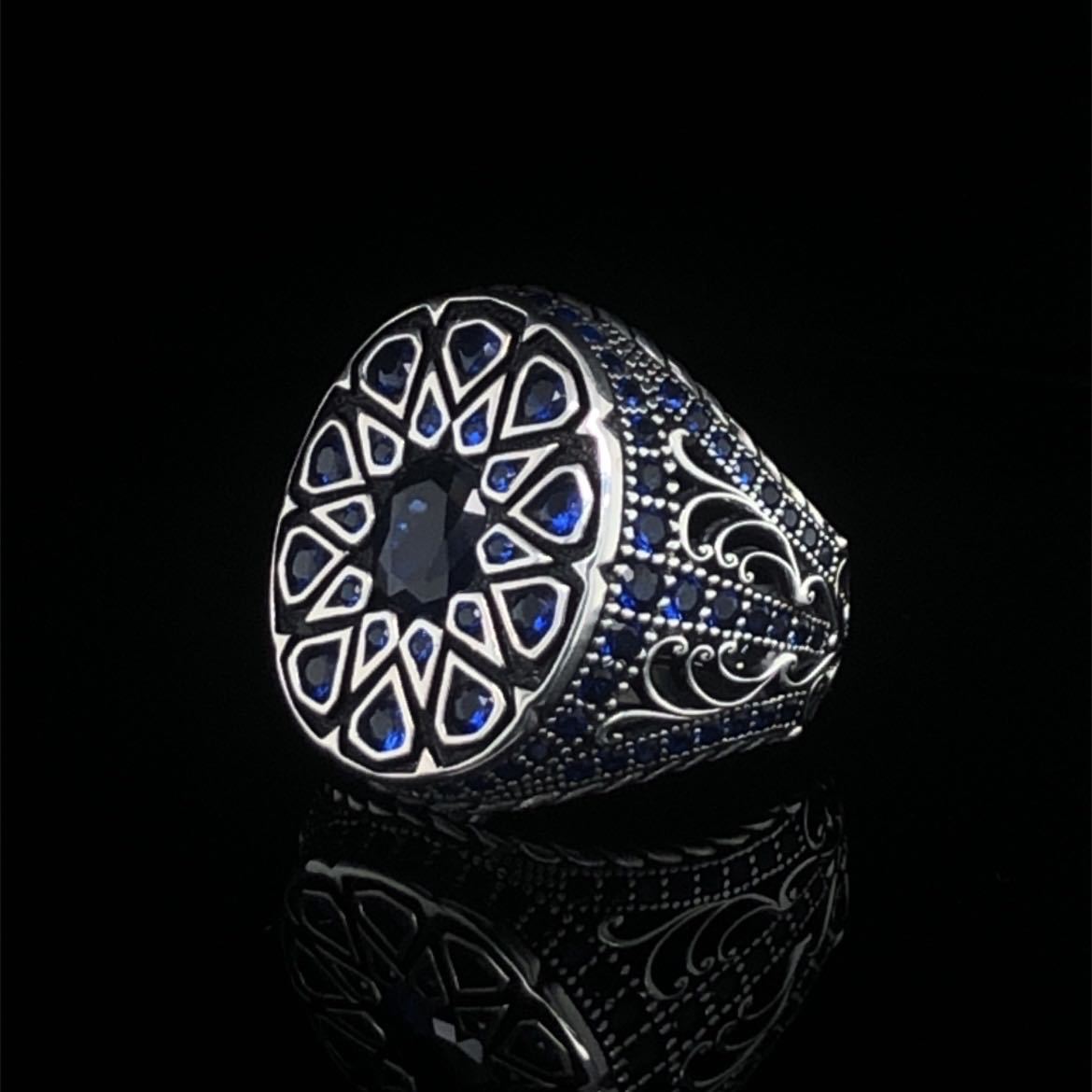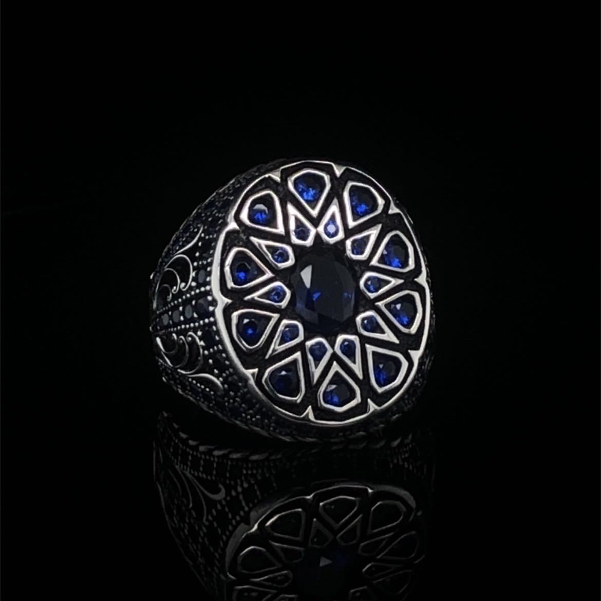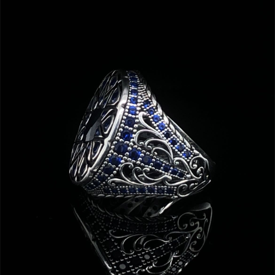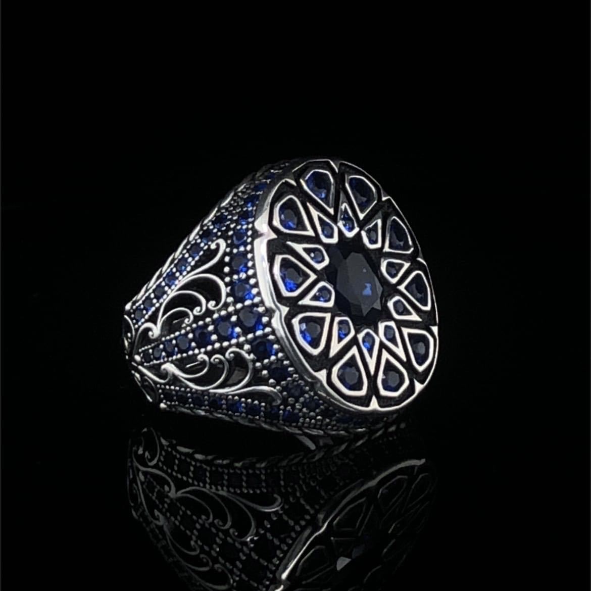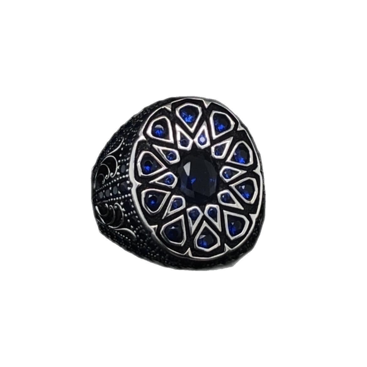 Sanjie European and American alloy men's ring blue diamond artisan diamond men's ring Amazon gemstone vintage ring