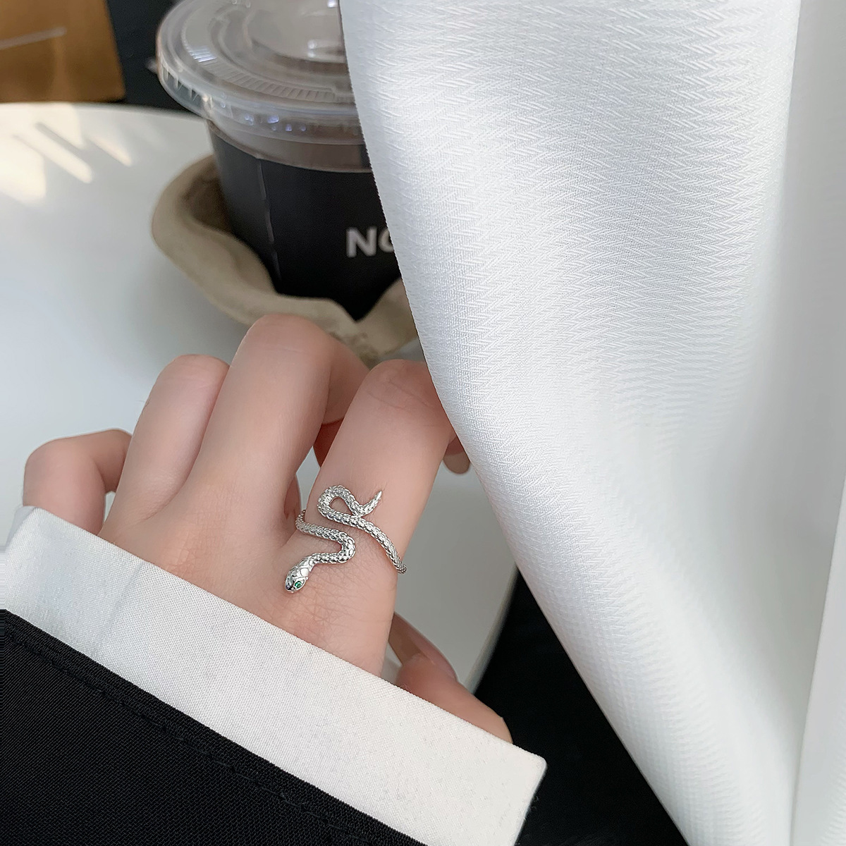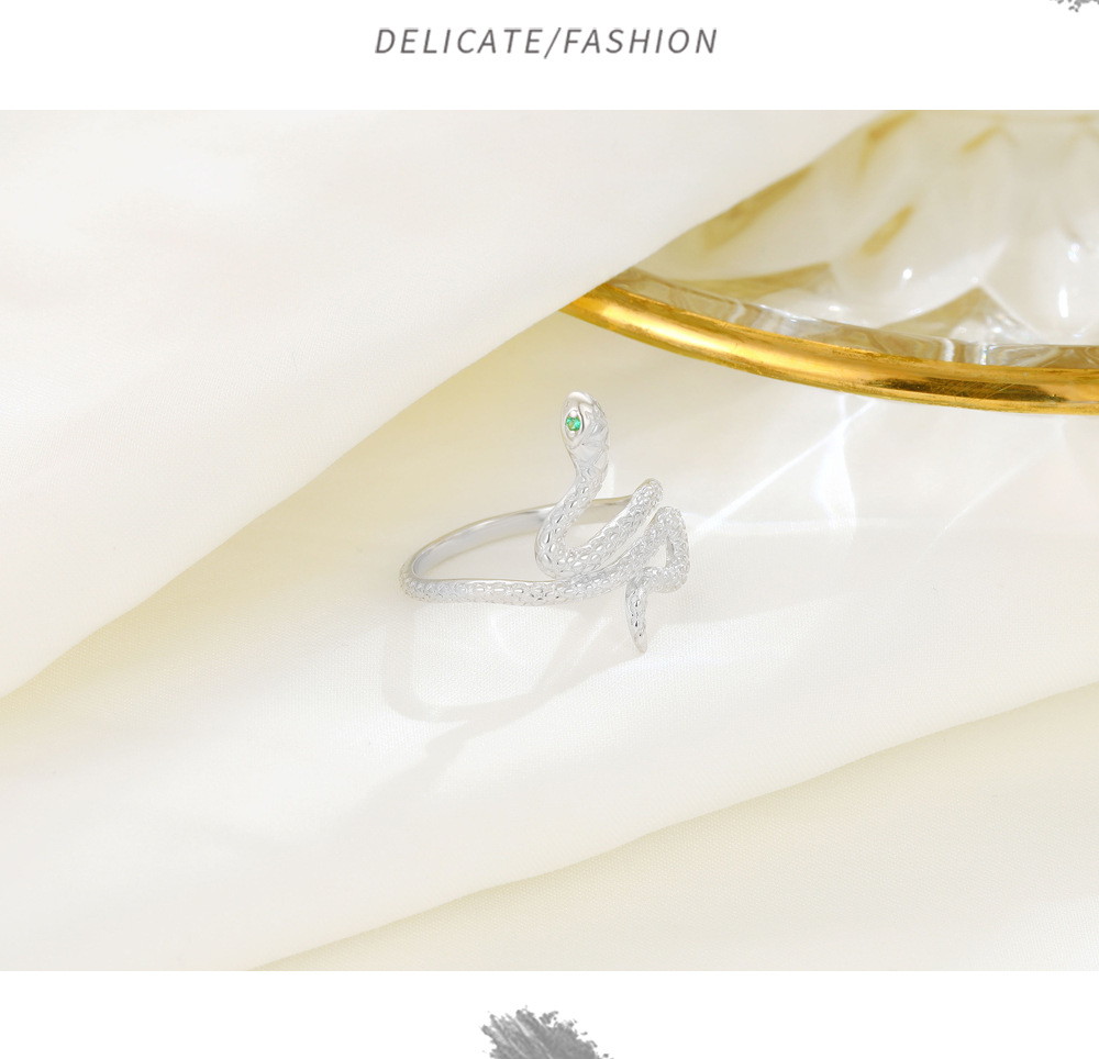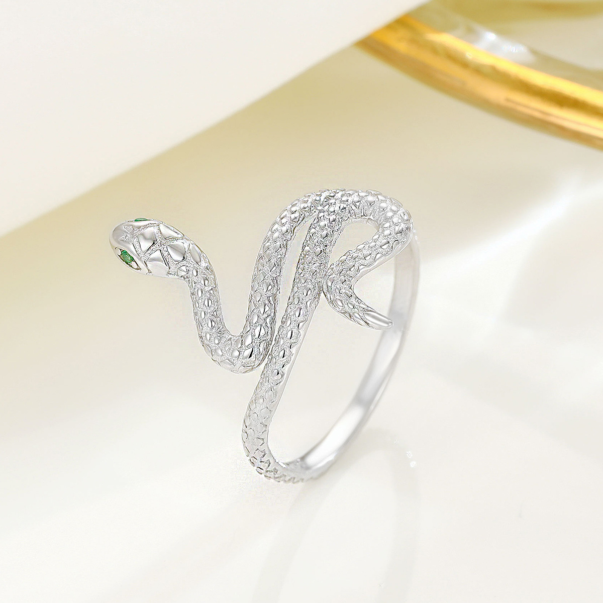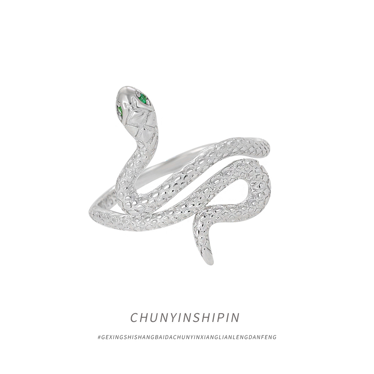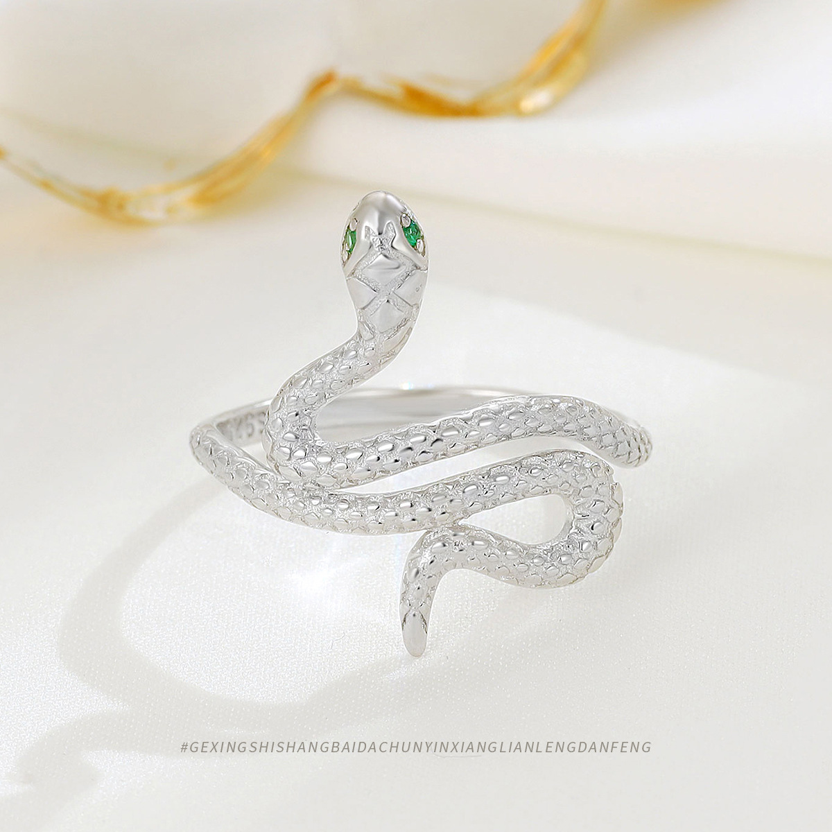 S925 Sterling Silver Green Eye Snake Ring Elegant Niche Jewelry Personalized Snake Open Ring Fashion Accessories for Women