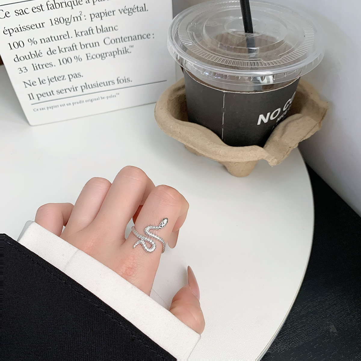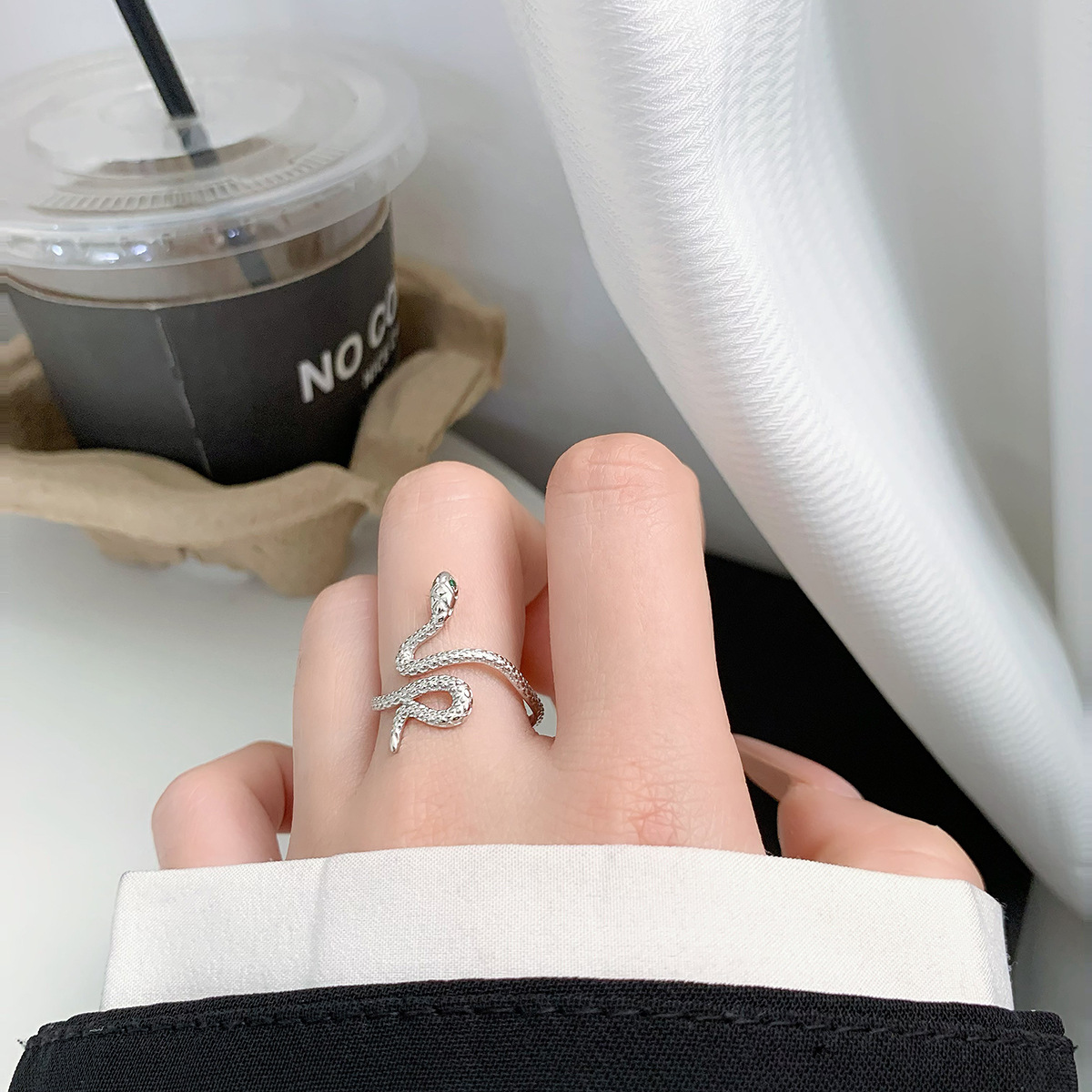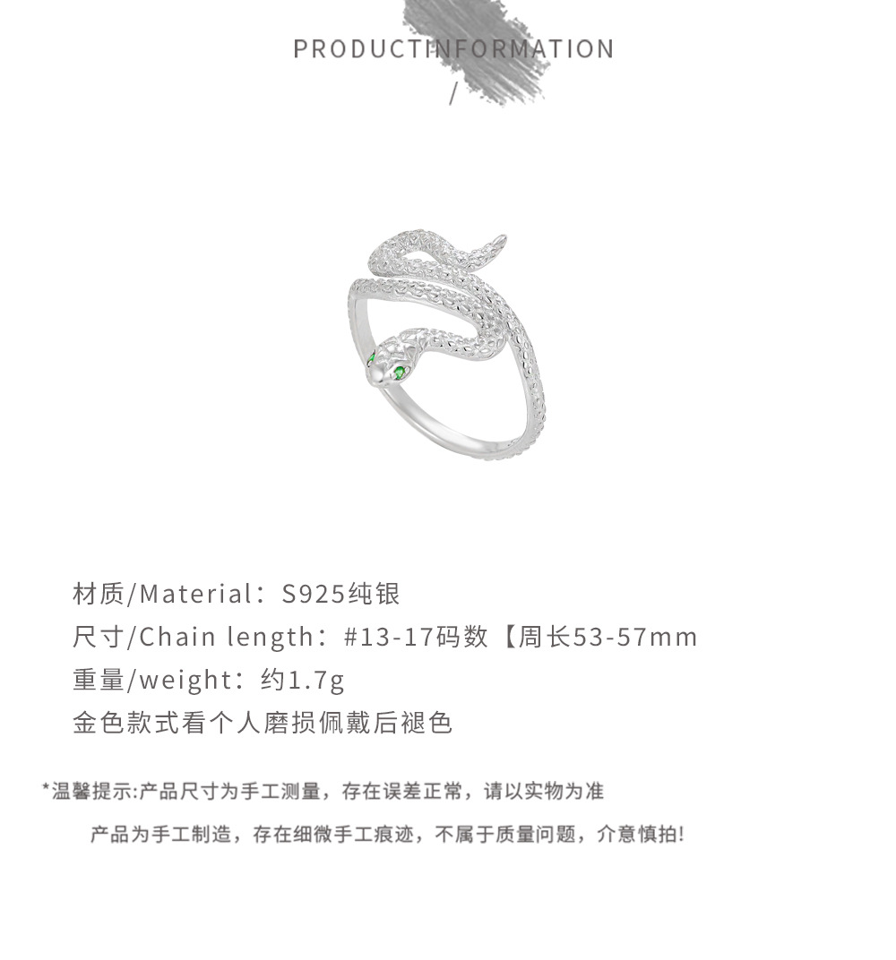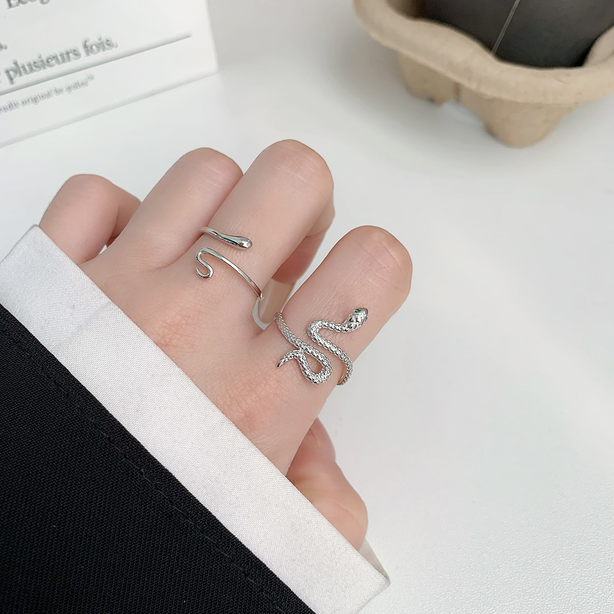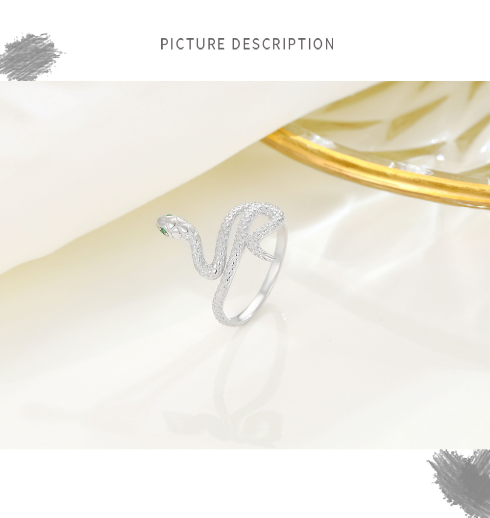 S925 Sterling Silver Green Eye Snake Ring Elegant Niche Jewelry Personalized Snake Open Ring Fashion Accessories for Women