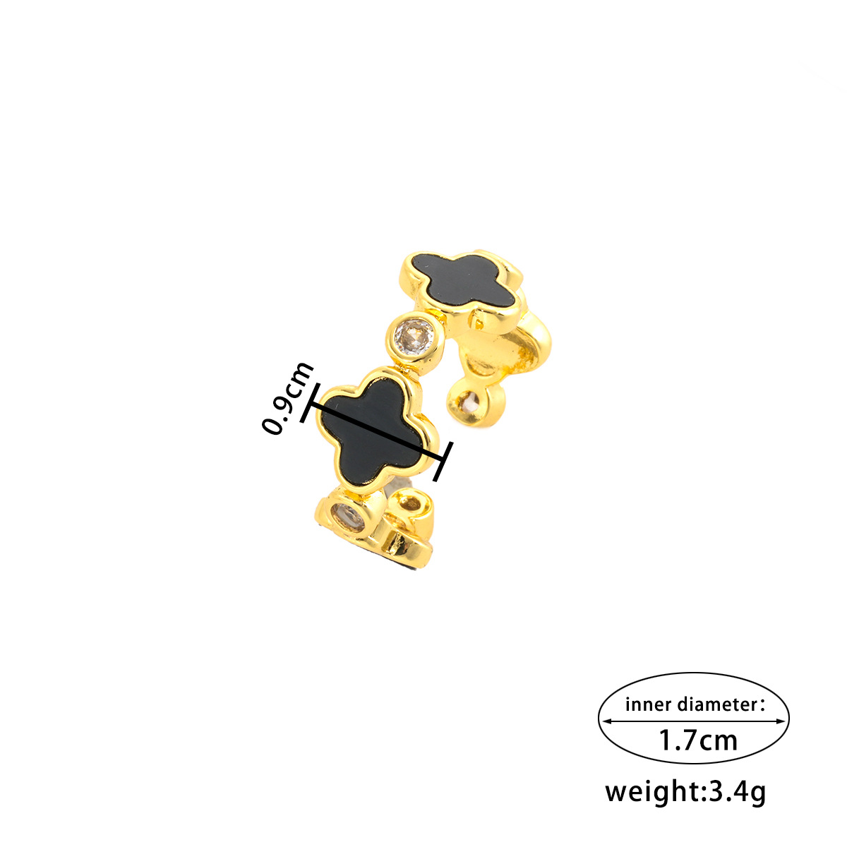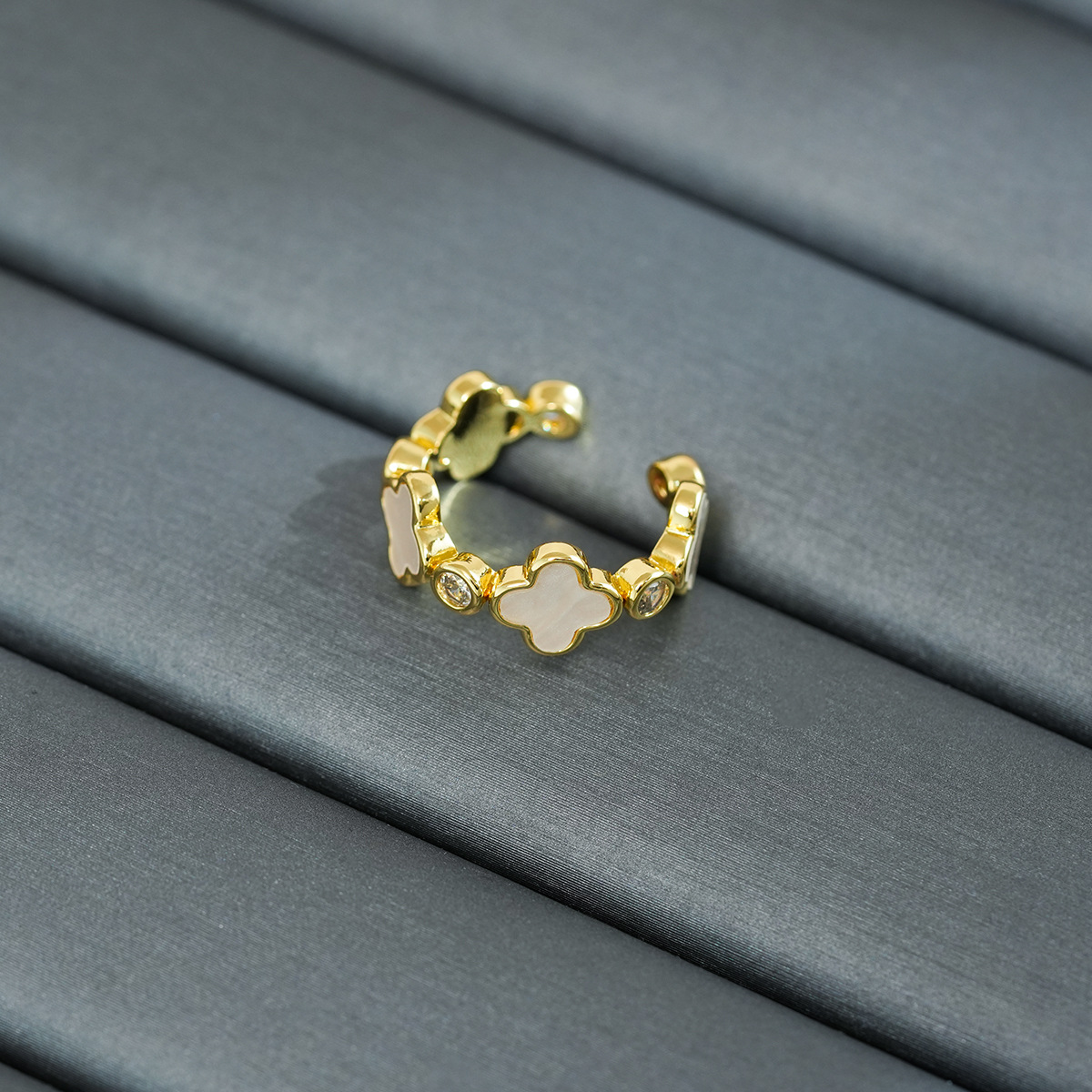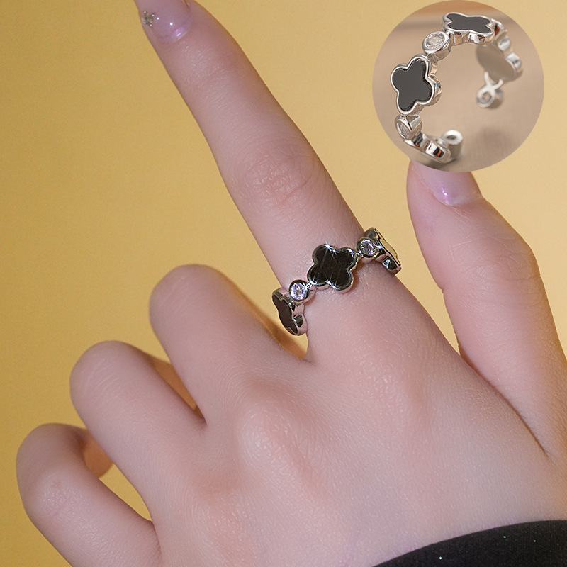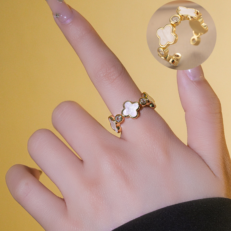 [Real Gold Plating] Classic Black and White Shell Four-Leaf Clover Ring Opening Women's Light Luxury Fashion Easiest for Match Casual Jewelry