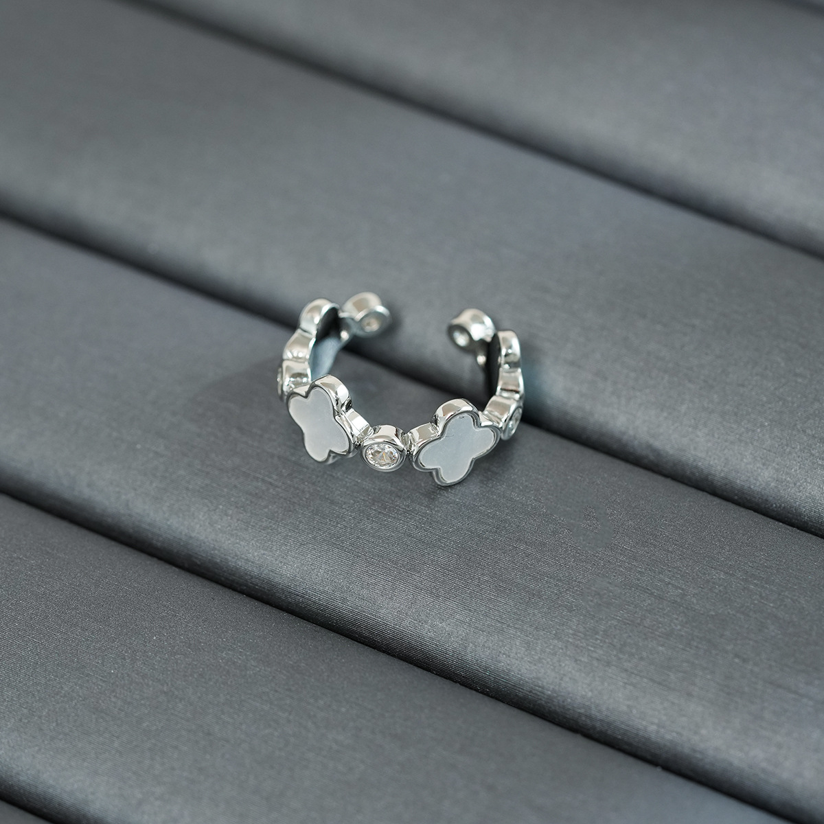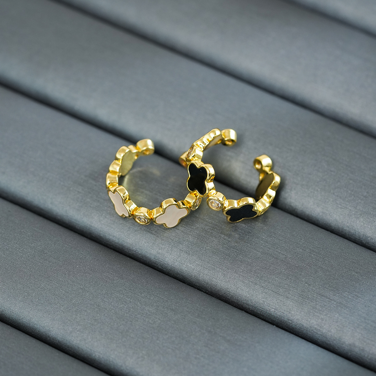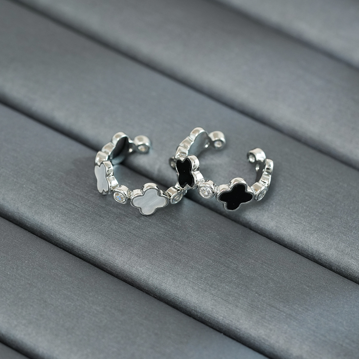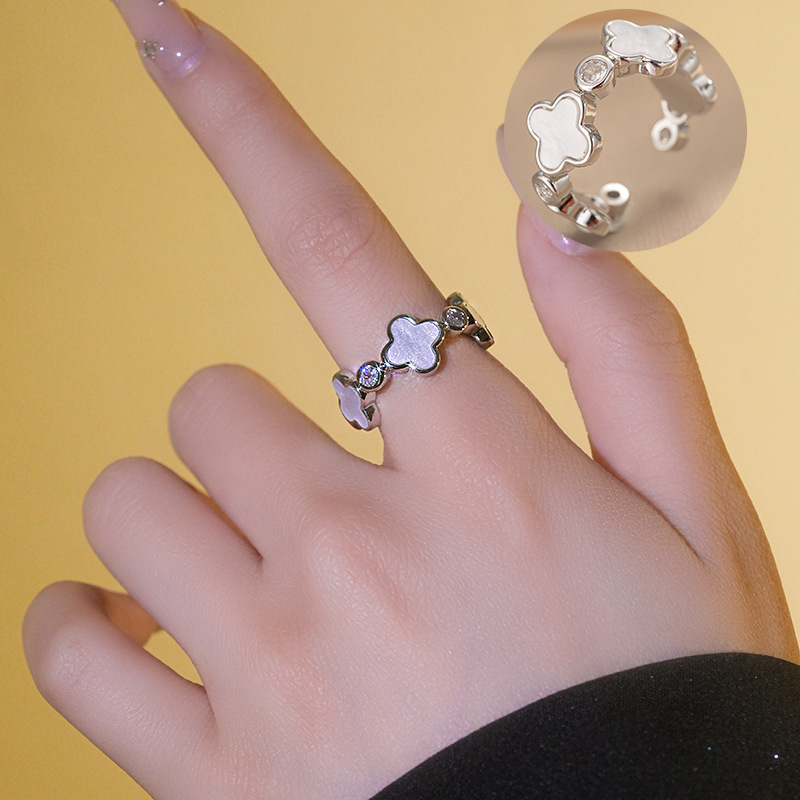 [Real Gold Plating] Classic Black and White Shell Four-Leaf Clover Ring Opening Women's Light Luxury Fashion Easiest for Match Casual Jewelry