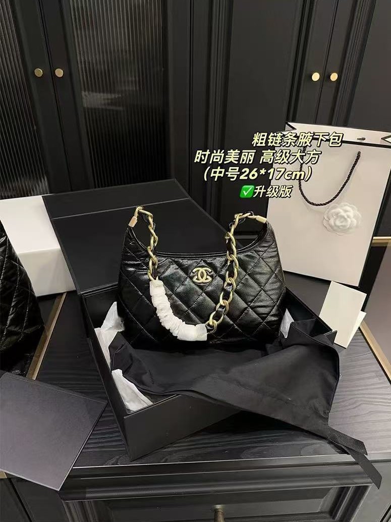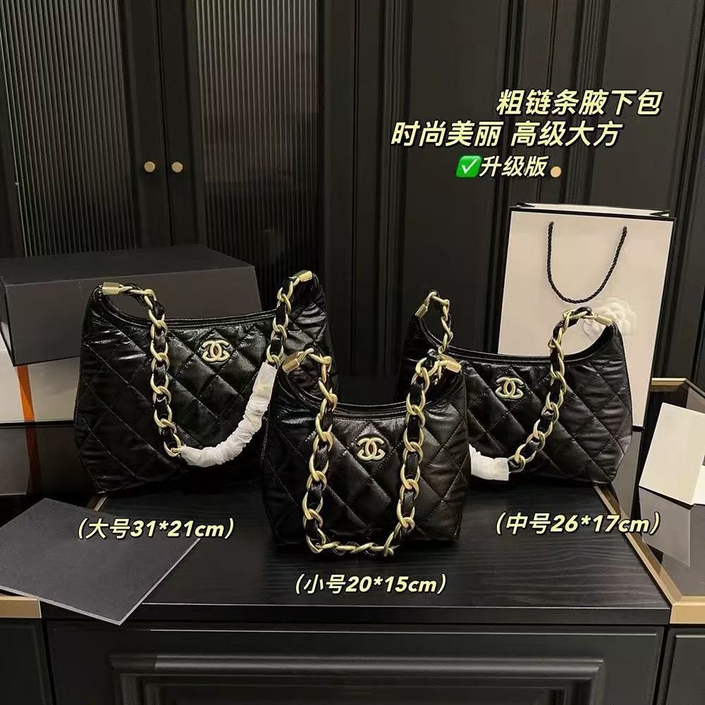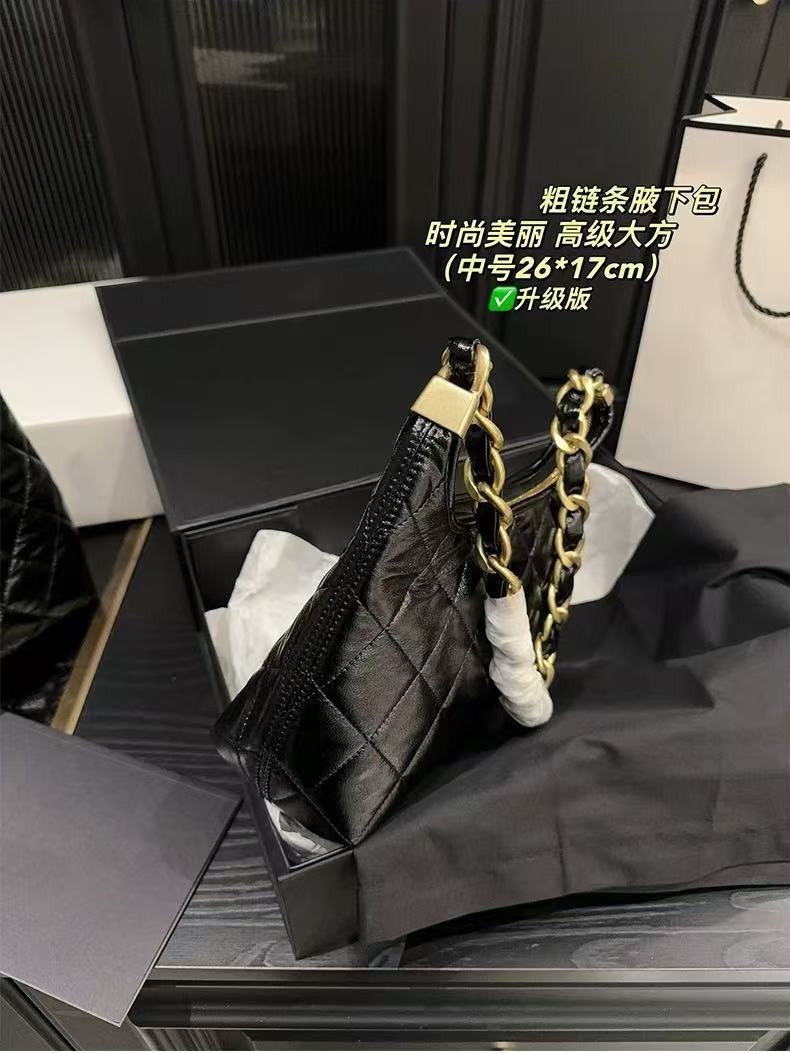 2025 New 24A Chanel Style hobo Vintage Thick Chain Underarm Bag Lamb Genuine Leather Rhombic Shoulder Bag for Women
