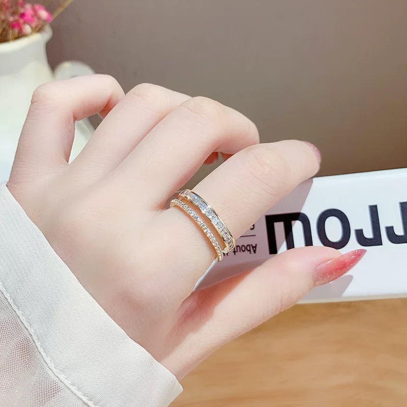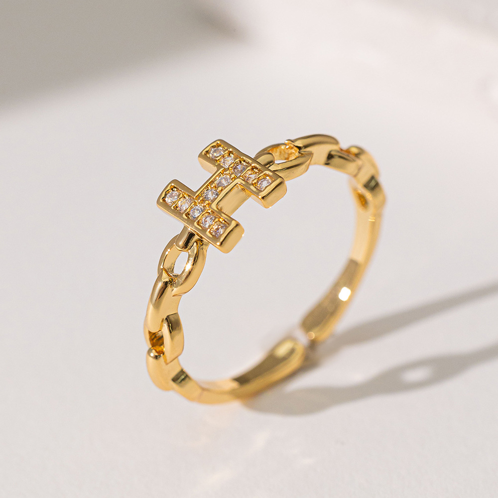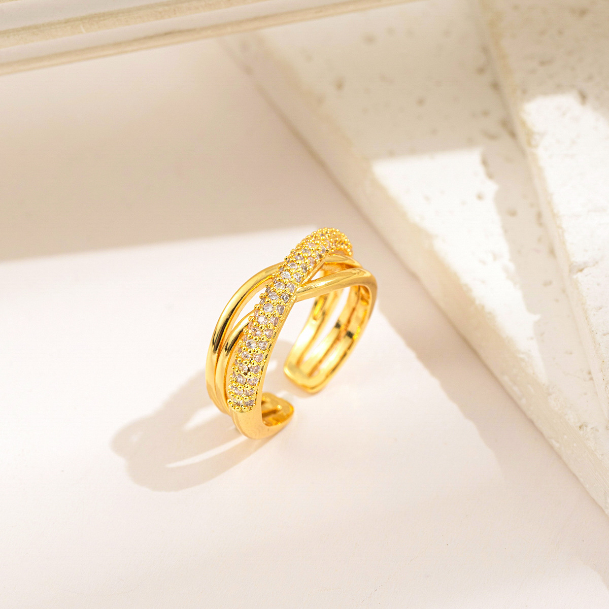 Color: 【f1186】double-layer cross single diamond ring【gold】