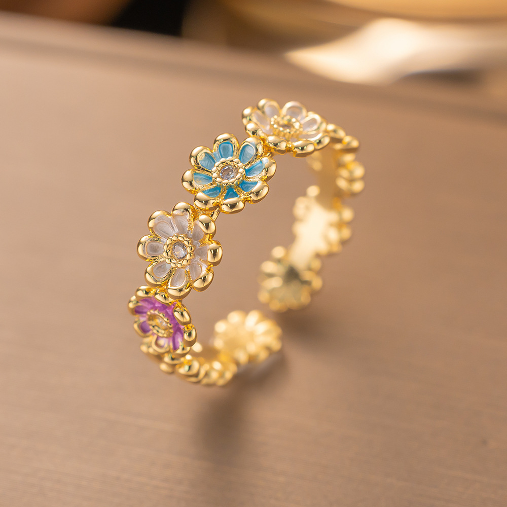Color: 【f1128】red diamond plum blossom ring【gold】