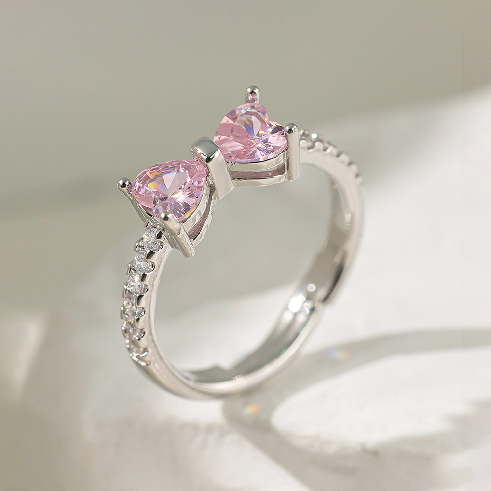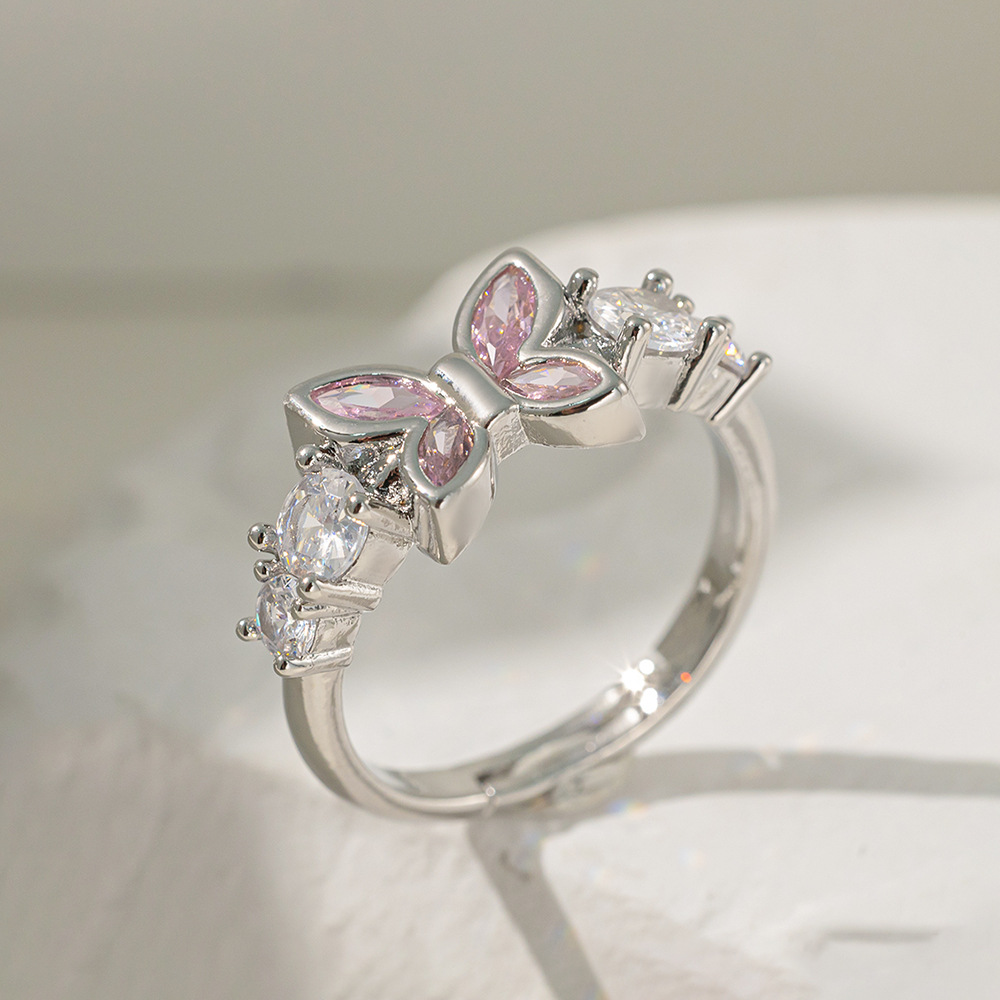 Color: 【f1206】flat pink diamond butterfly ring【silver】