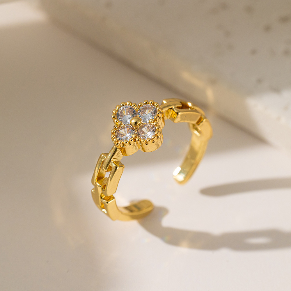 Color: 【f1129】zircon four-leaf flower ring【gold】