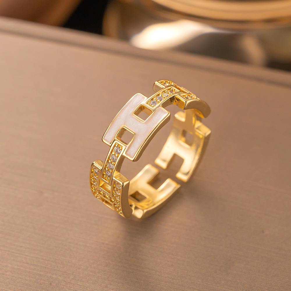Color: 【f1119】dripping glaze letter h ring [gold]