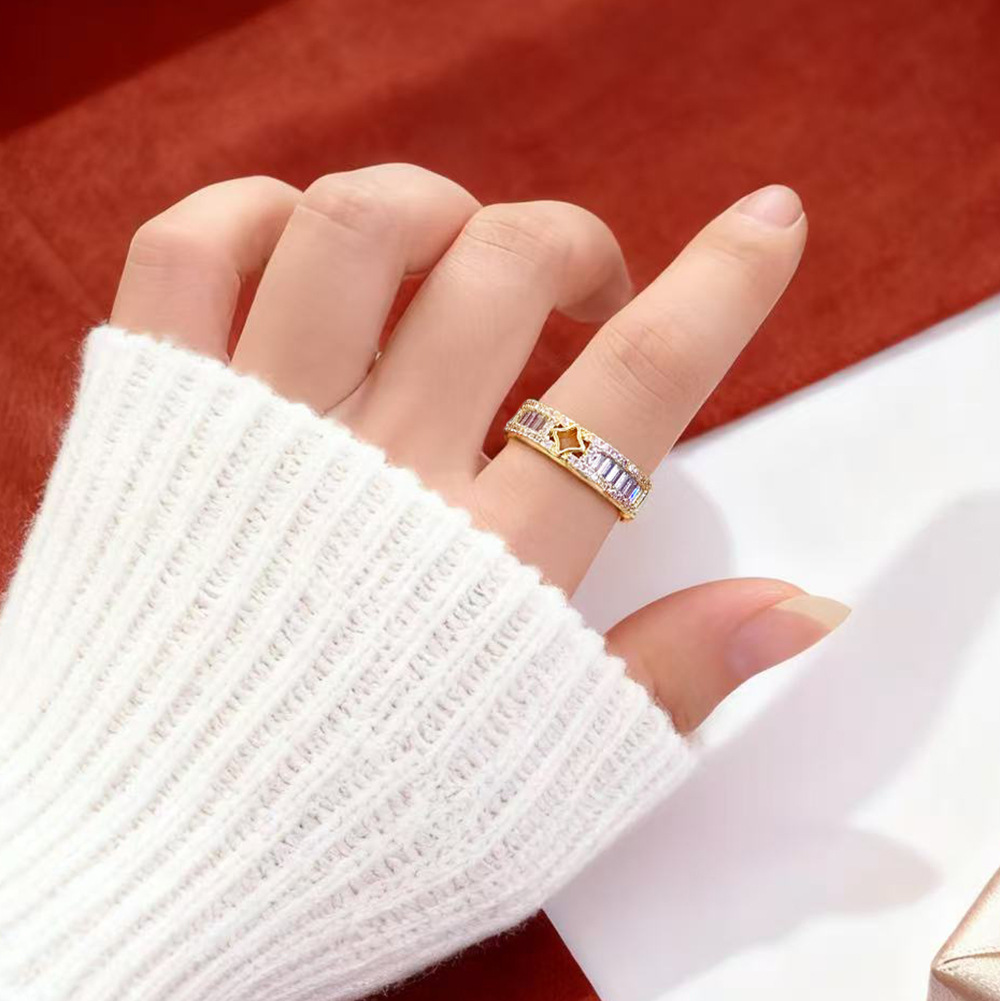 Color: 【f1171】diamond-encrusted hollow diamond ring【gold】