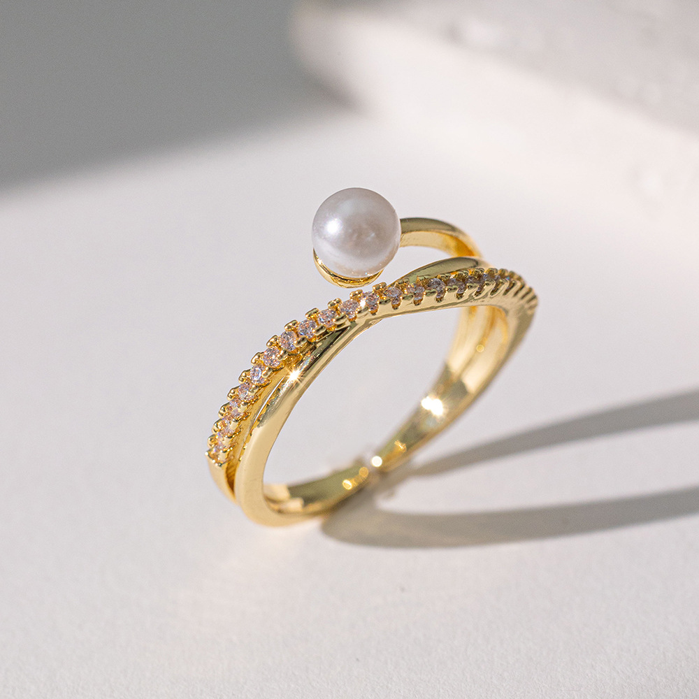Color: 【f1154】cross butterfly pearl ring【gold】