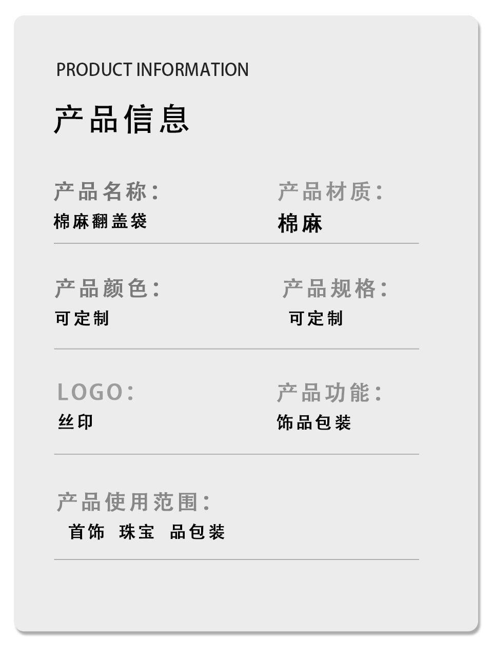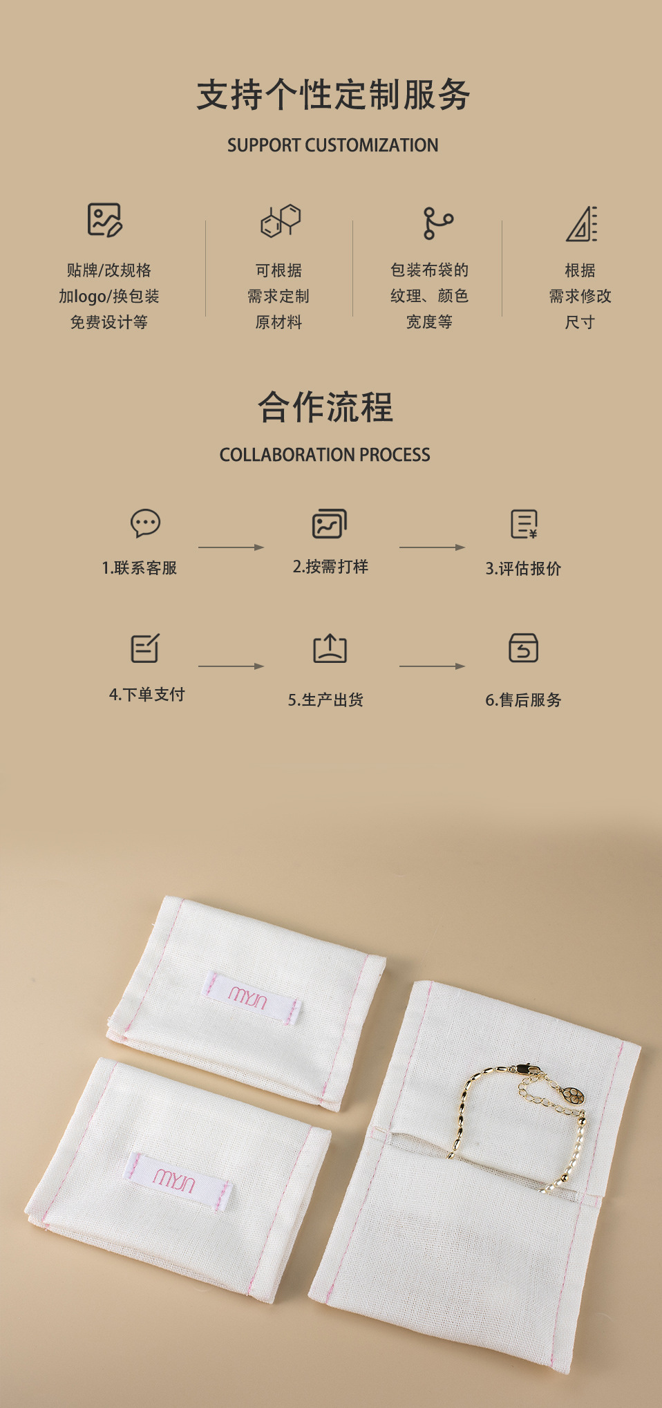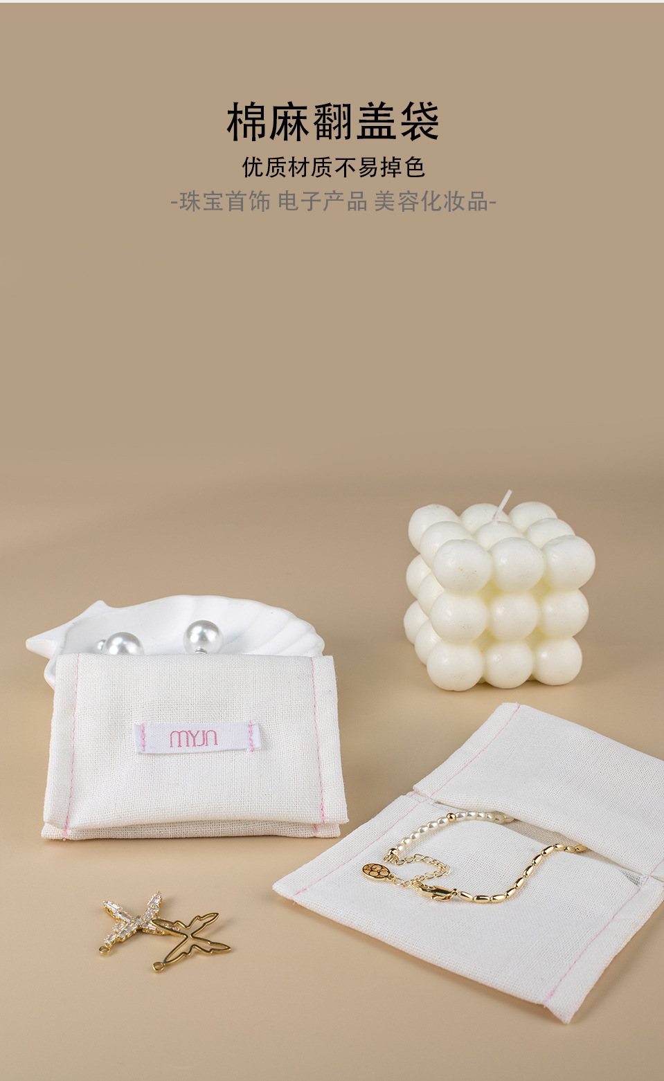 Factory New Dustproof Jewelry Packaging Bag All Cotton Cotton Linen Flip Twill Cloth Label Folding Envelope Bag