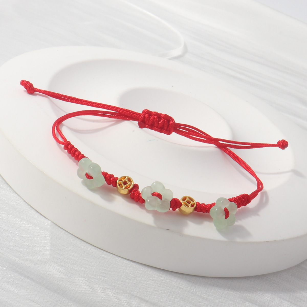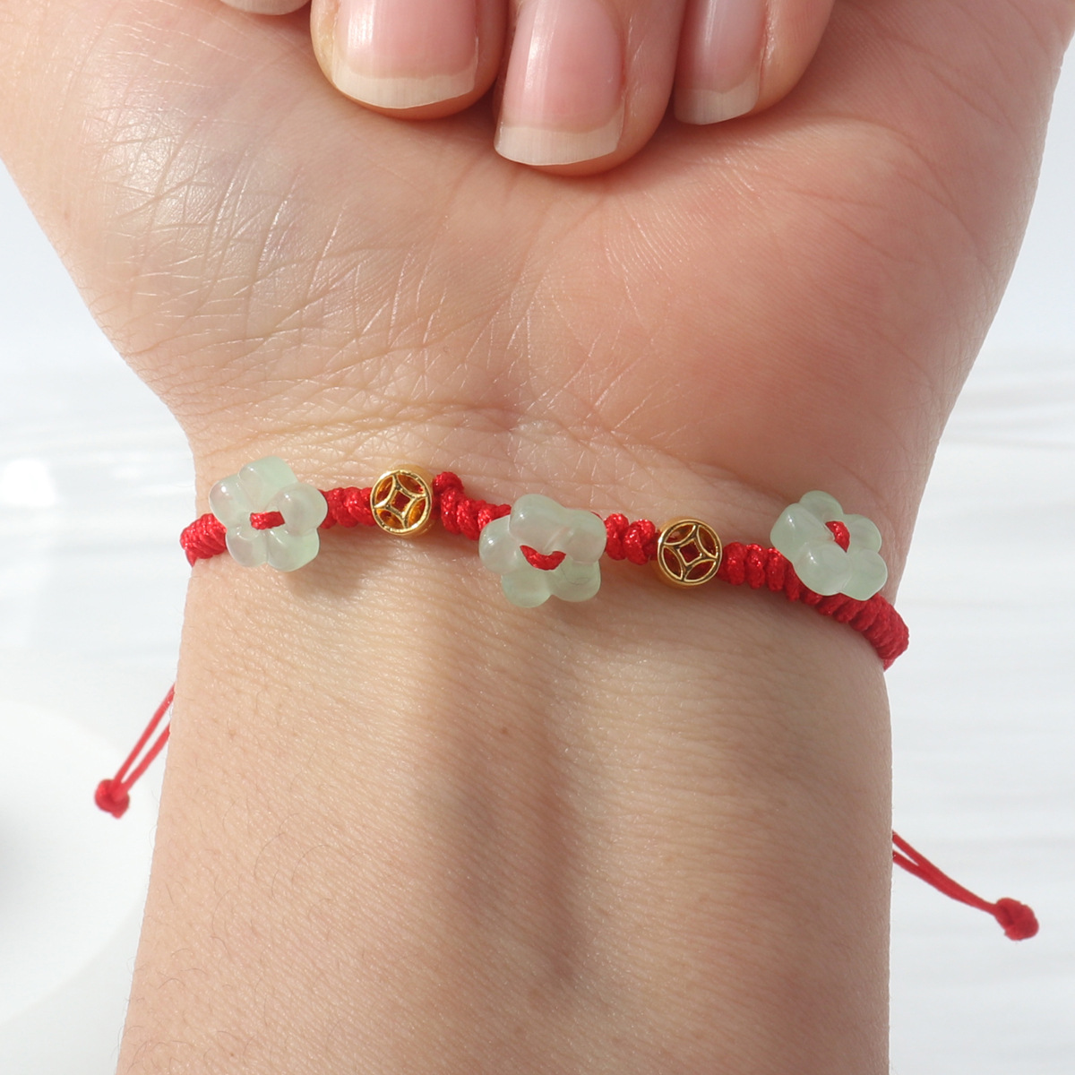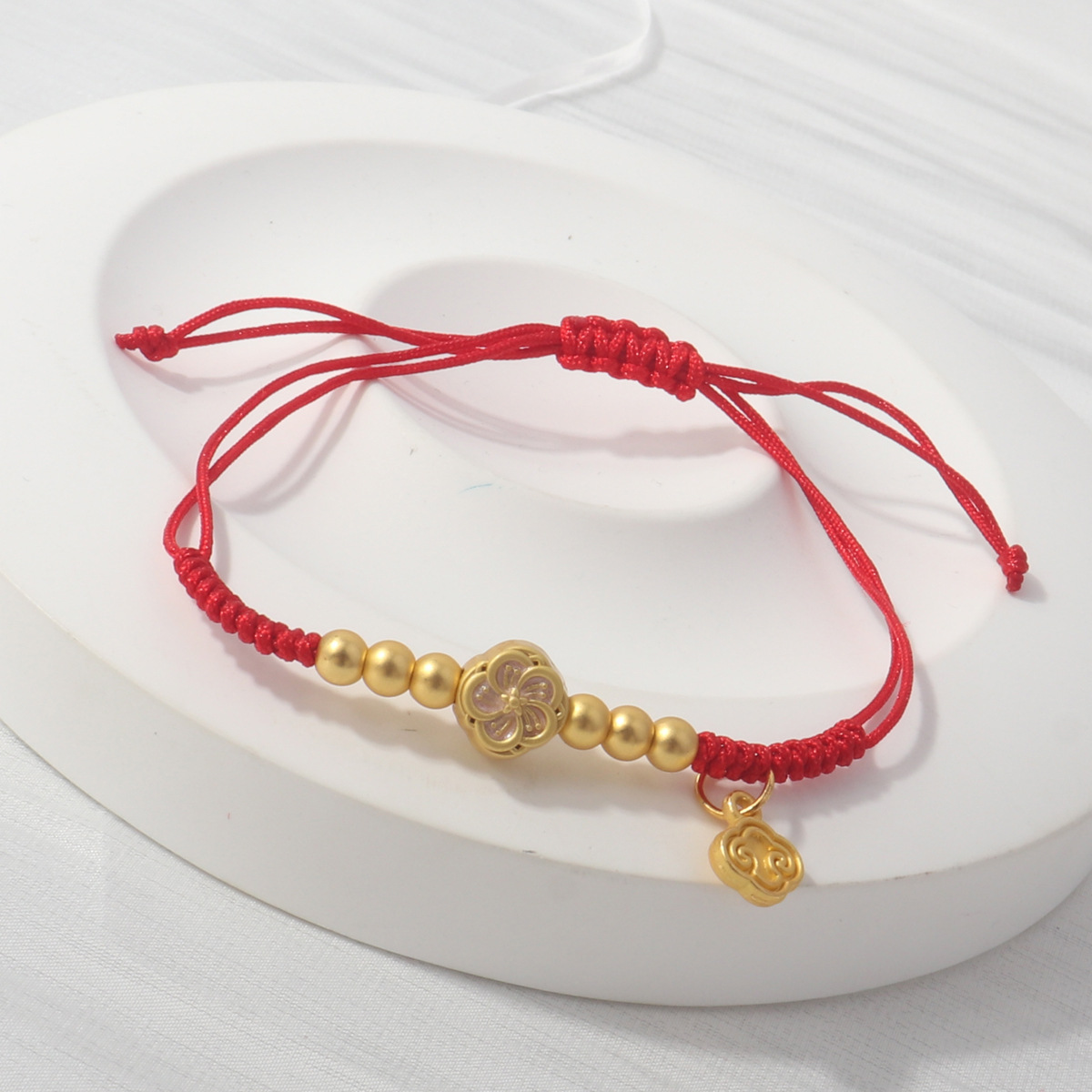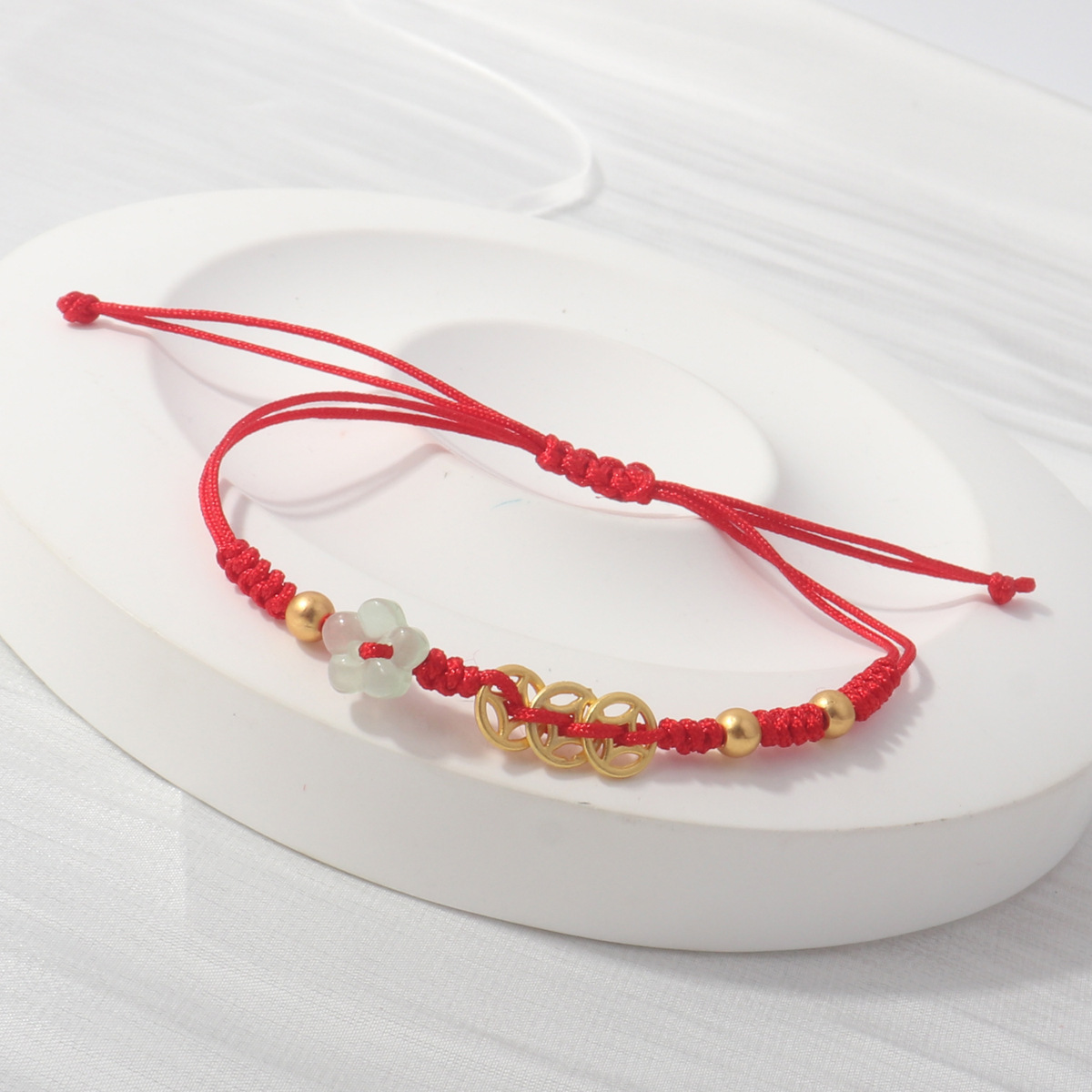 Colour: Flowers blooming wealth mini red rope braided bracelet