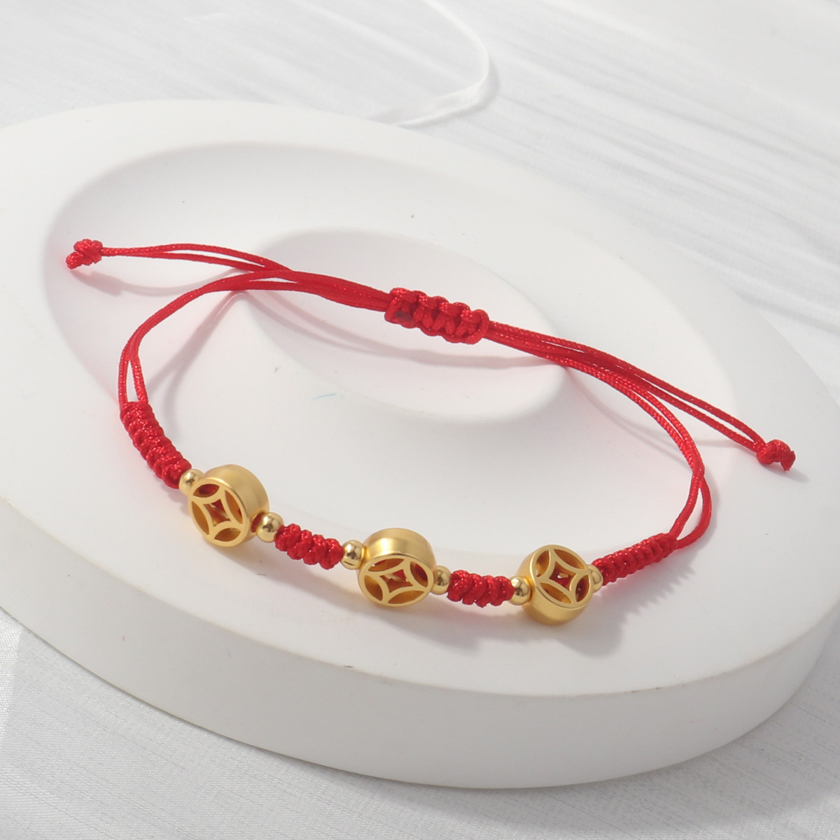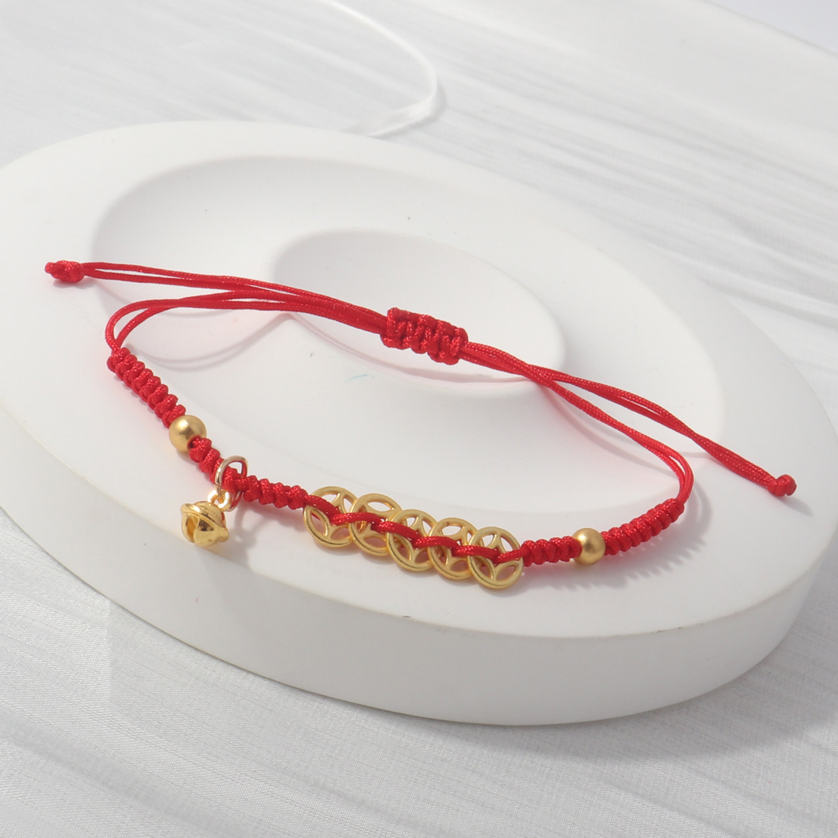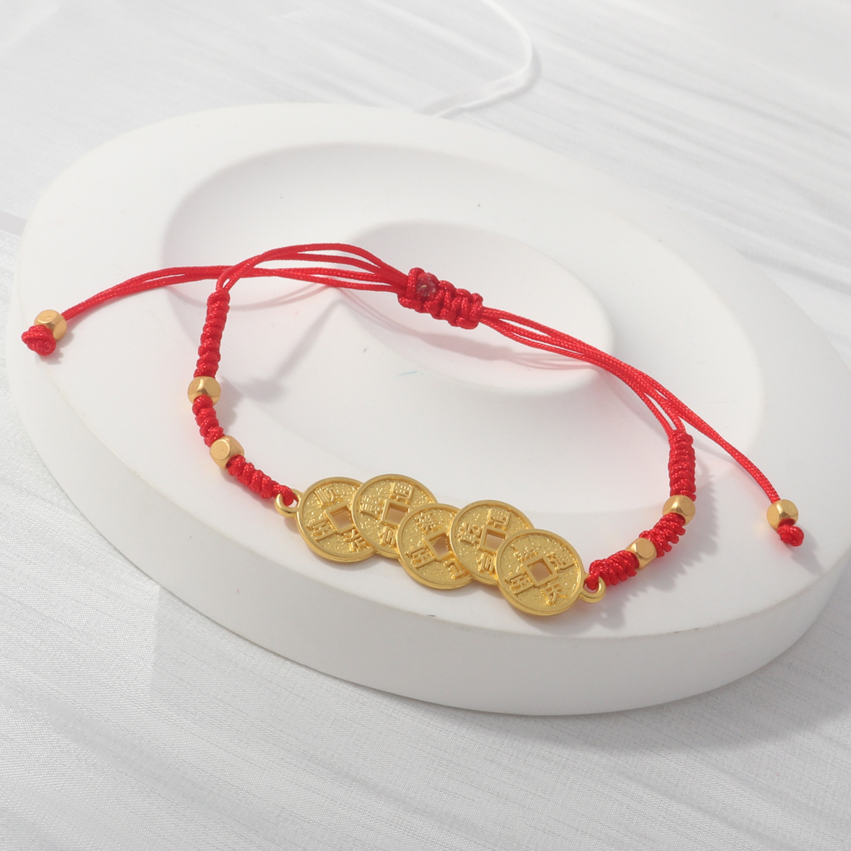Colour: Five emperors money mini red rope braided bracelet