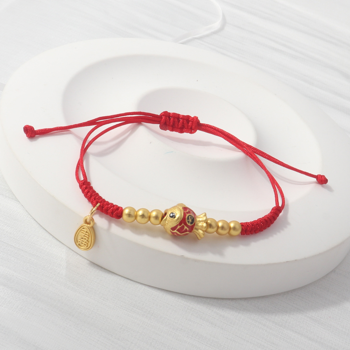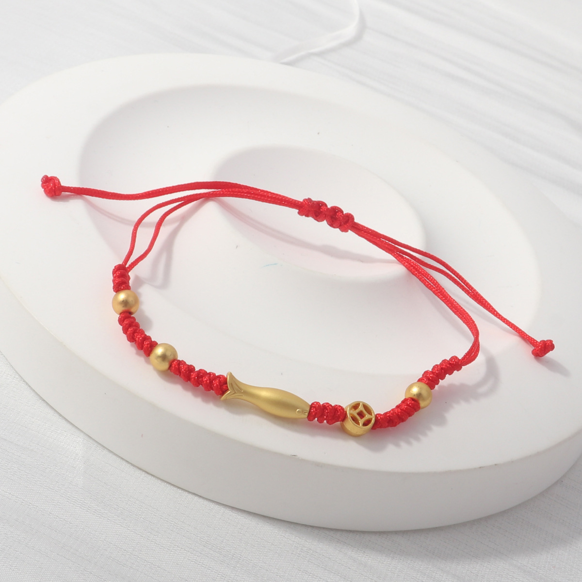 Colour: 3 emperor money koi mini red string braided bracelet