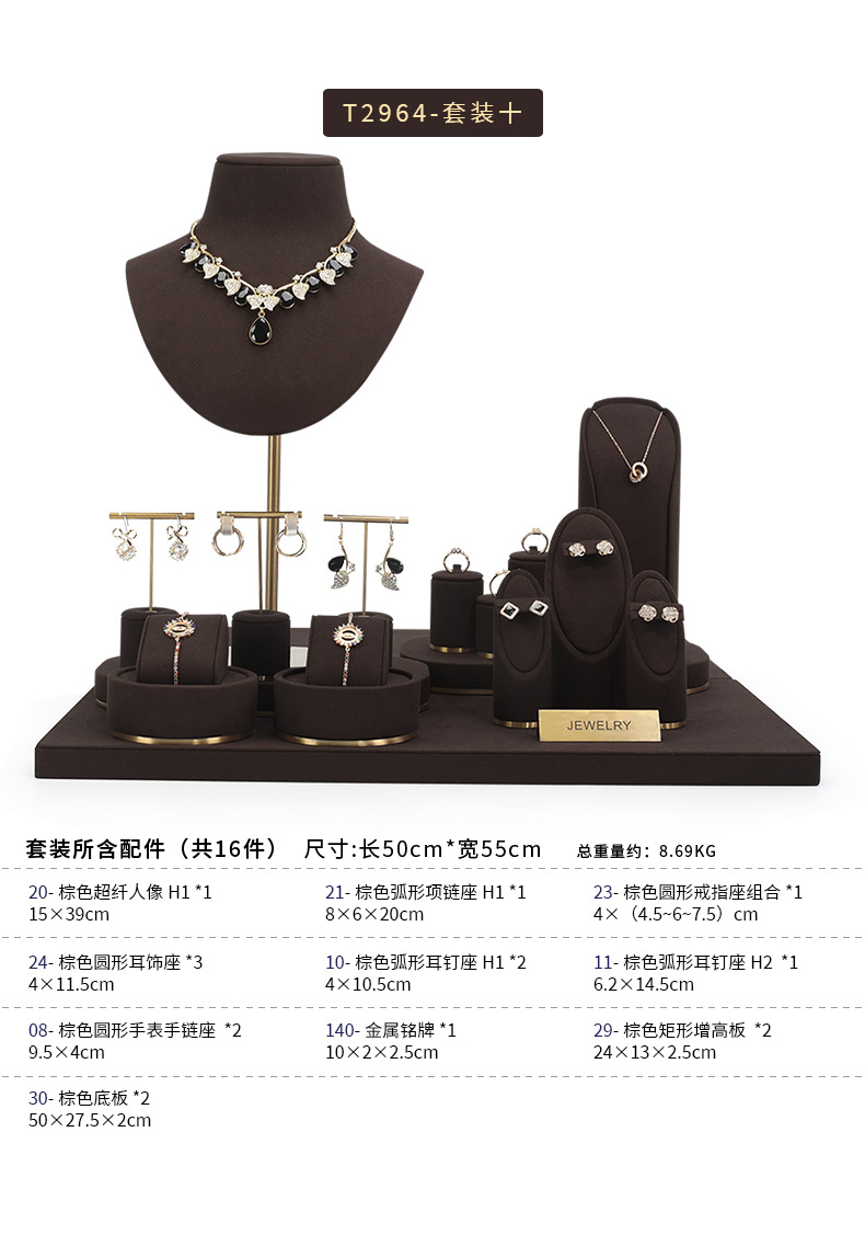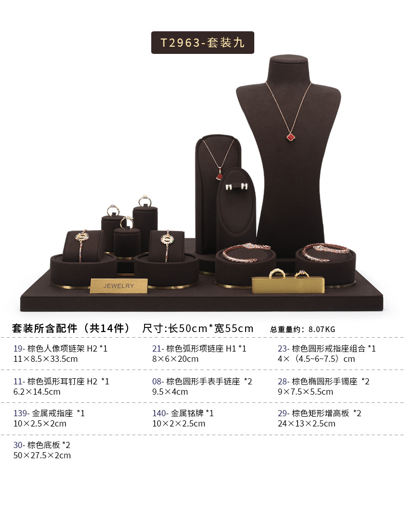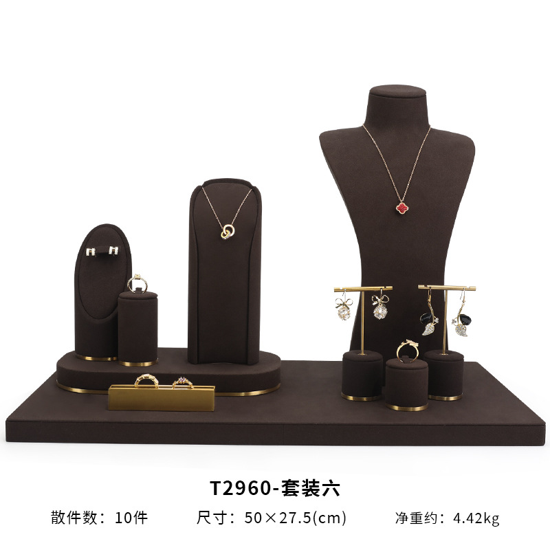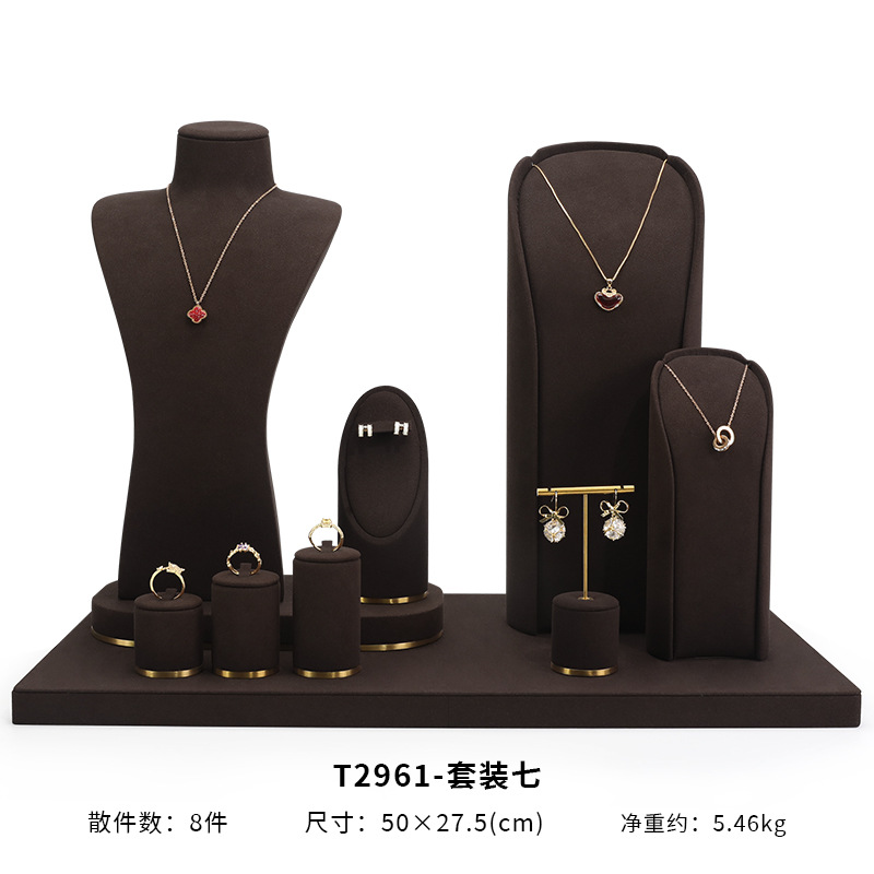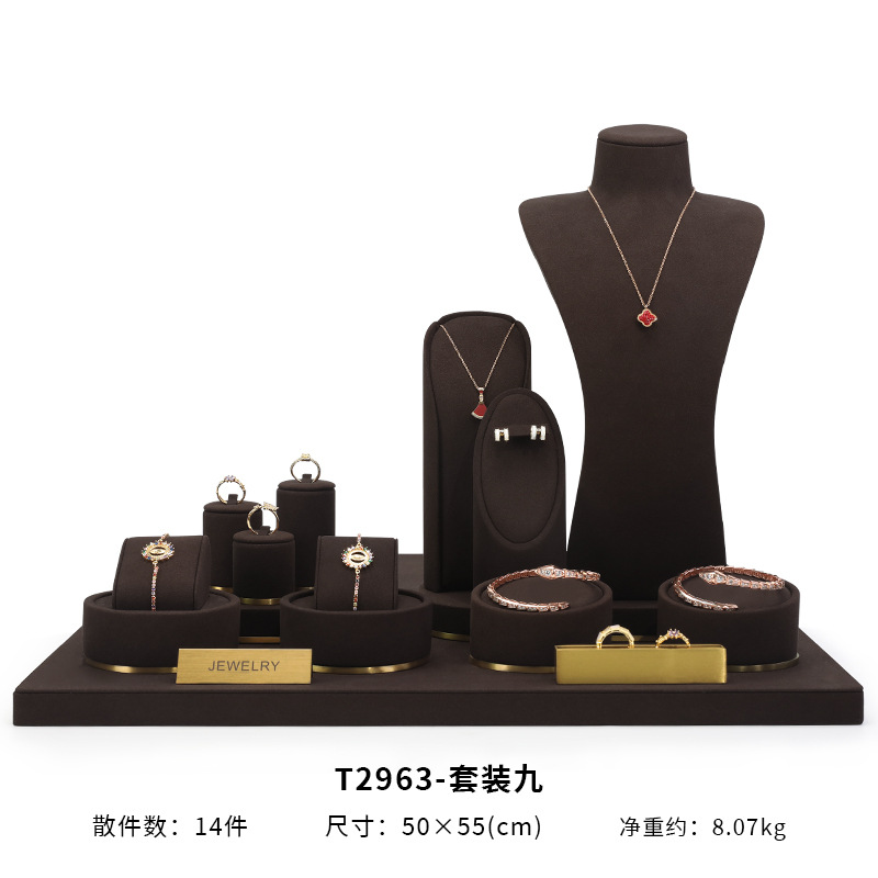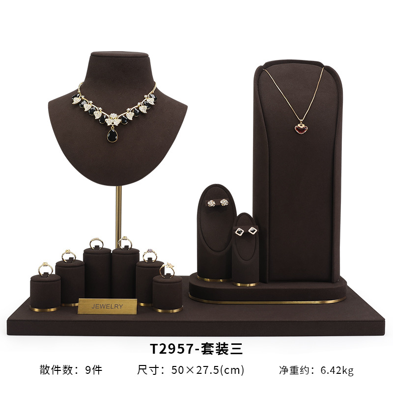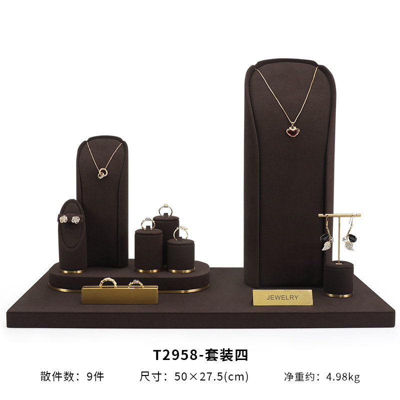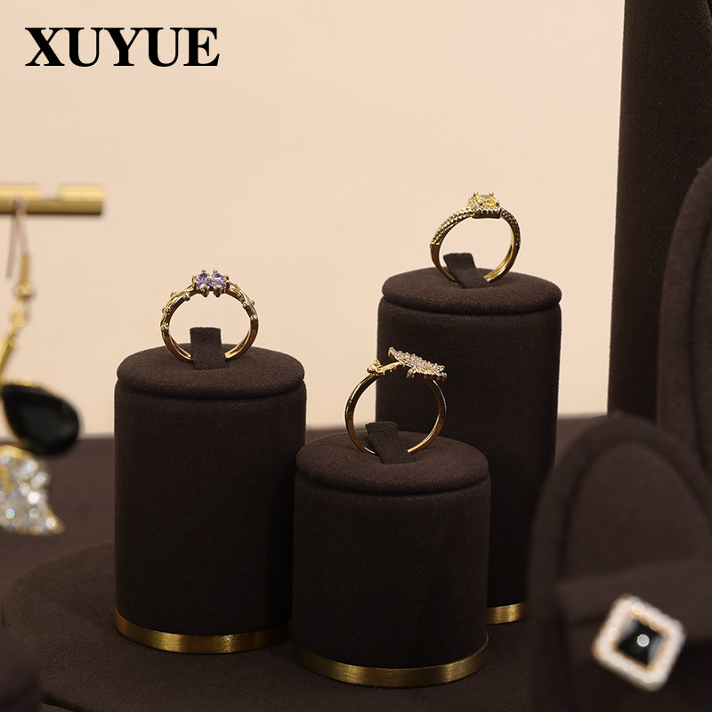 Xuyue Light Luxury Jewelry Display Props Brown Microfiber High-end Window Counter Jewelry Display Ring Earrings Display