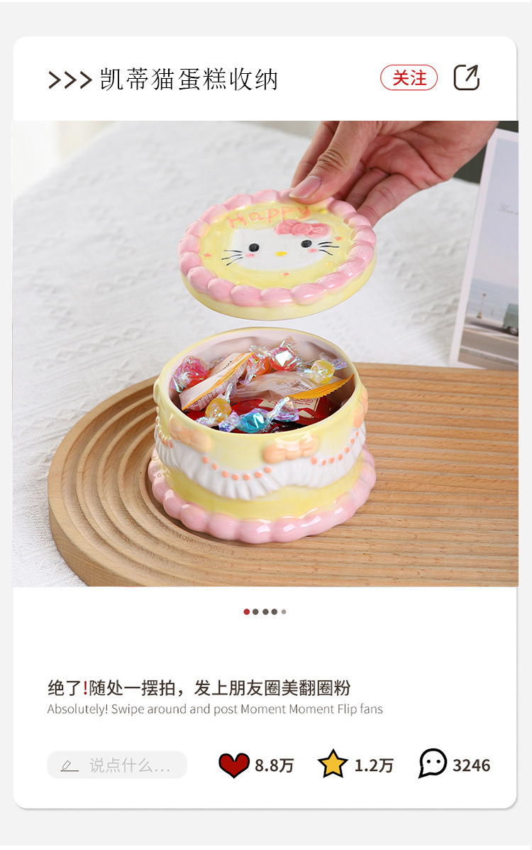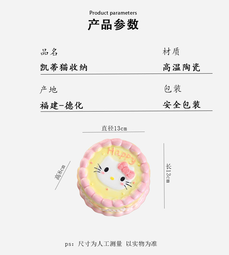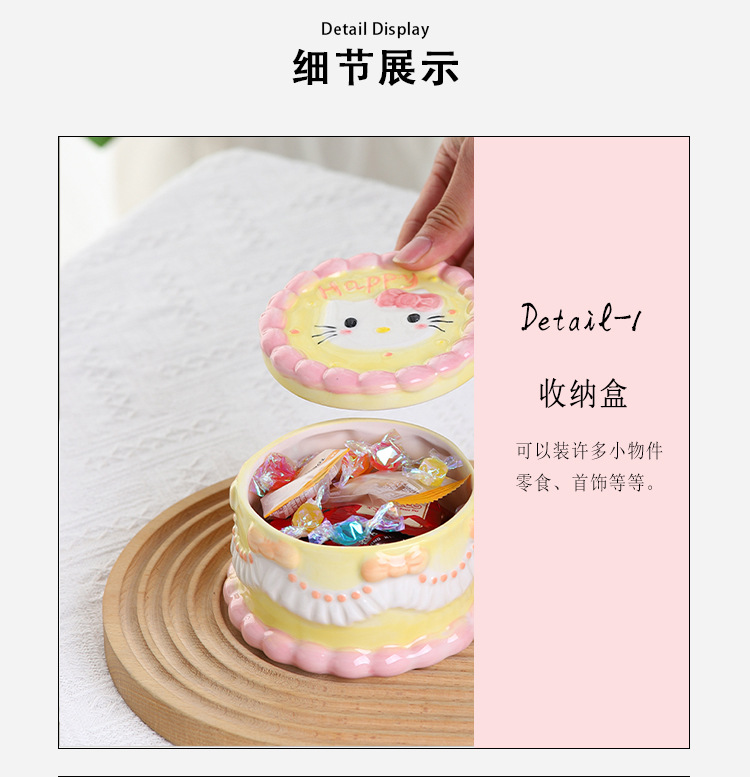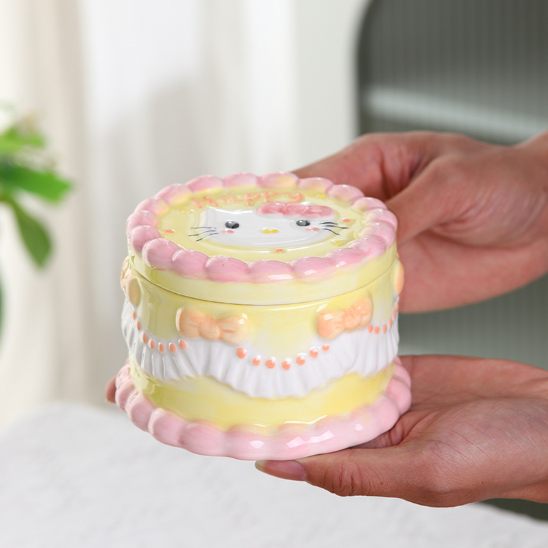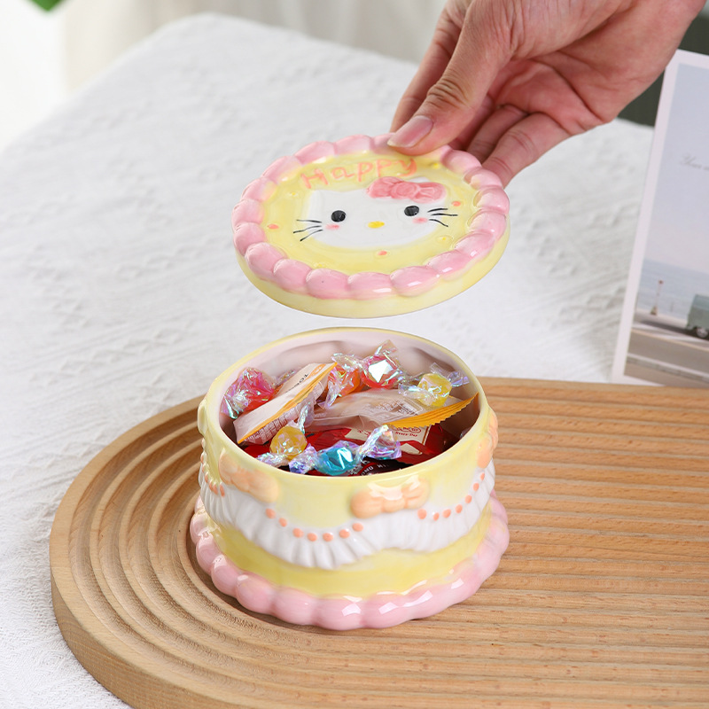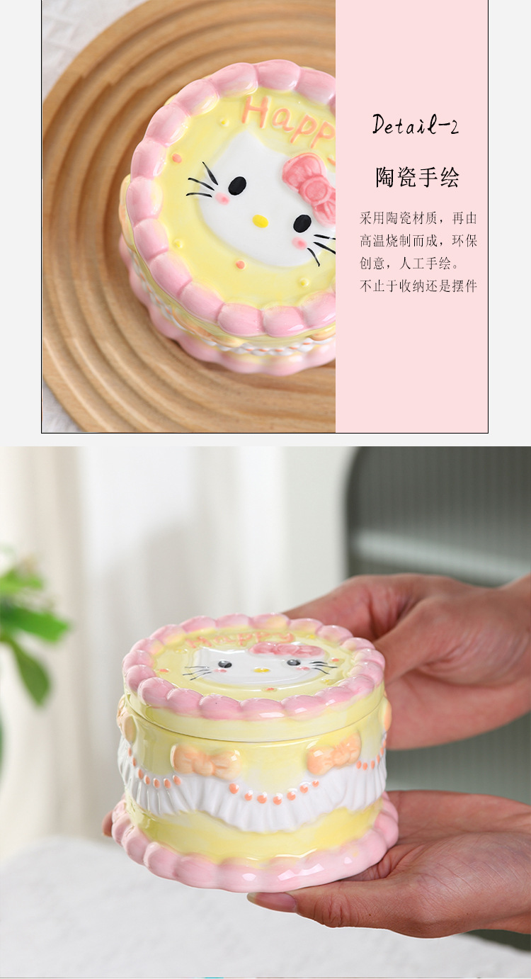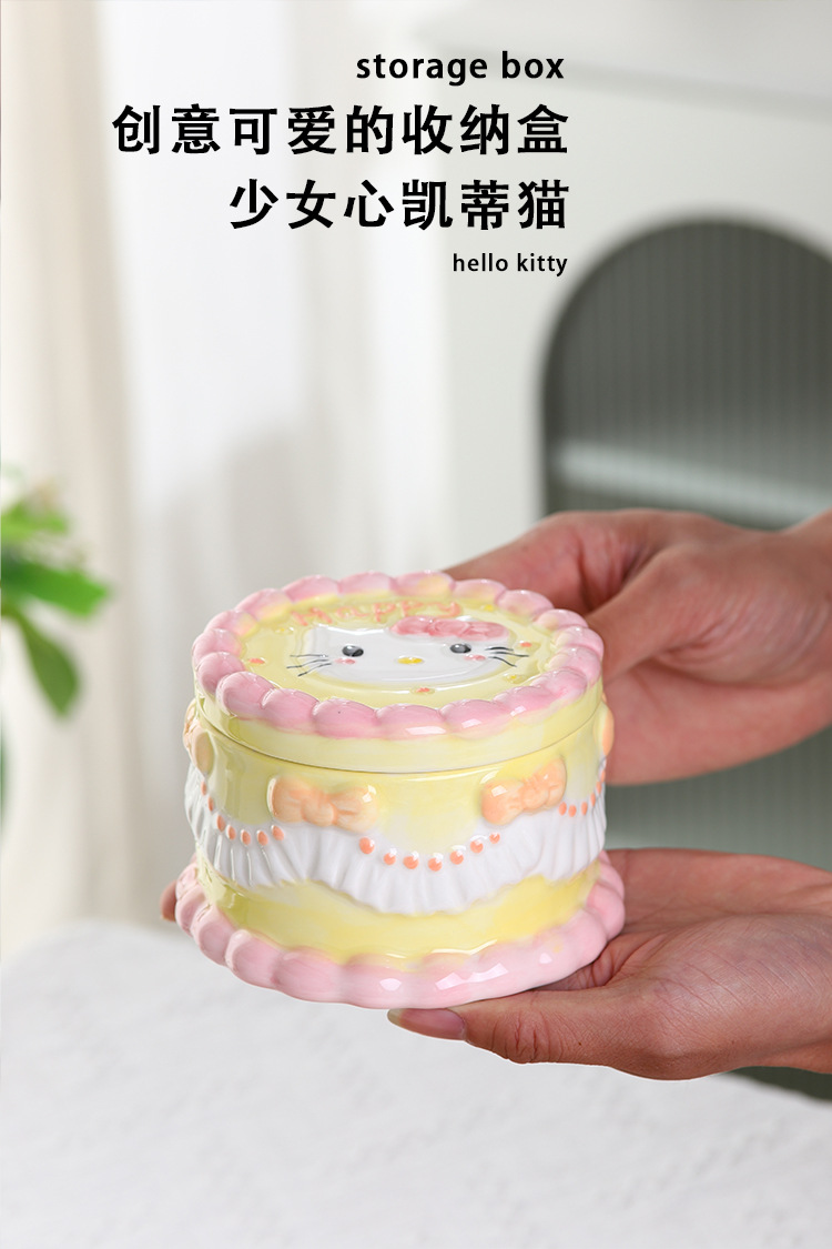 Cute Hello Kitty Jewelry Box Household Desktop Candy Storage Exquisite Kt Cat Ceramic Storage Cans Ashtray with Lid