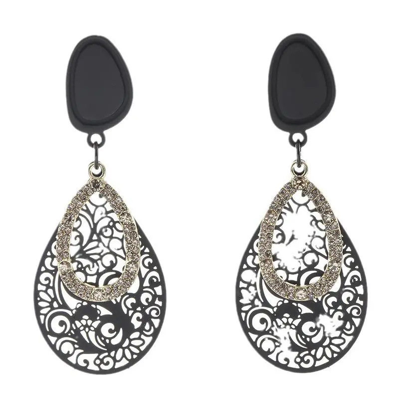 Colour: Hollow pattern water drop retro earrings 803