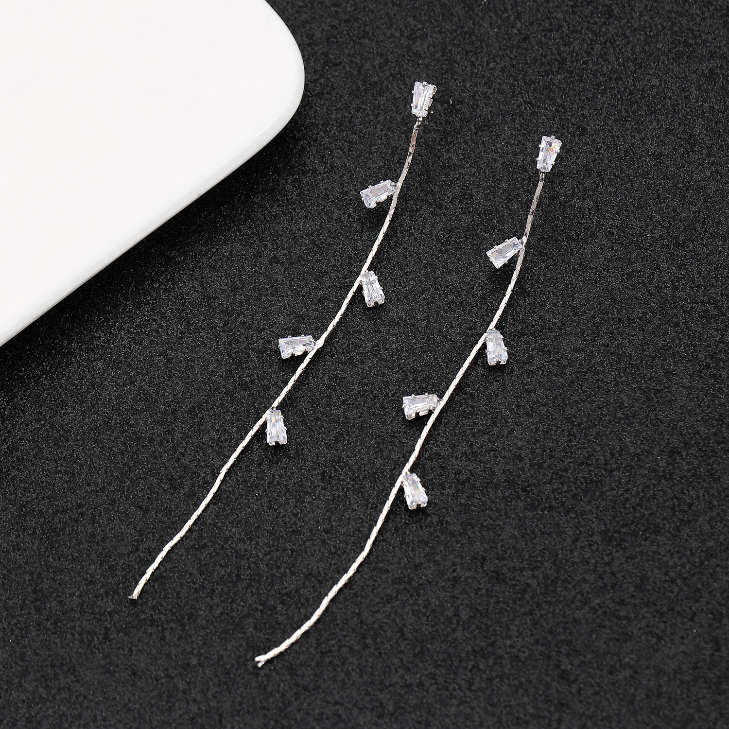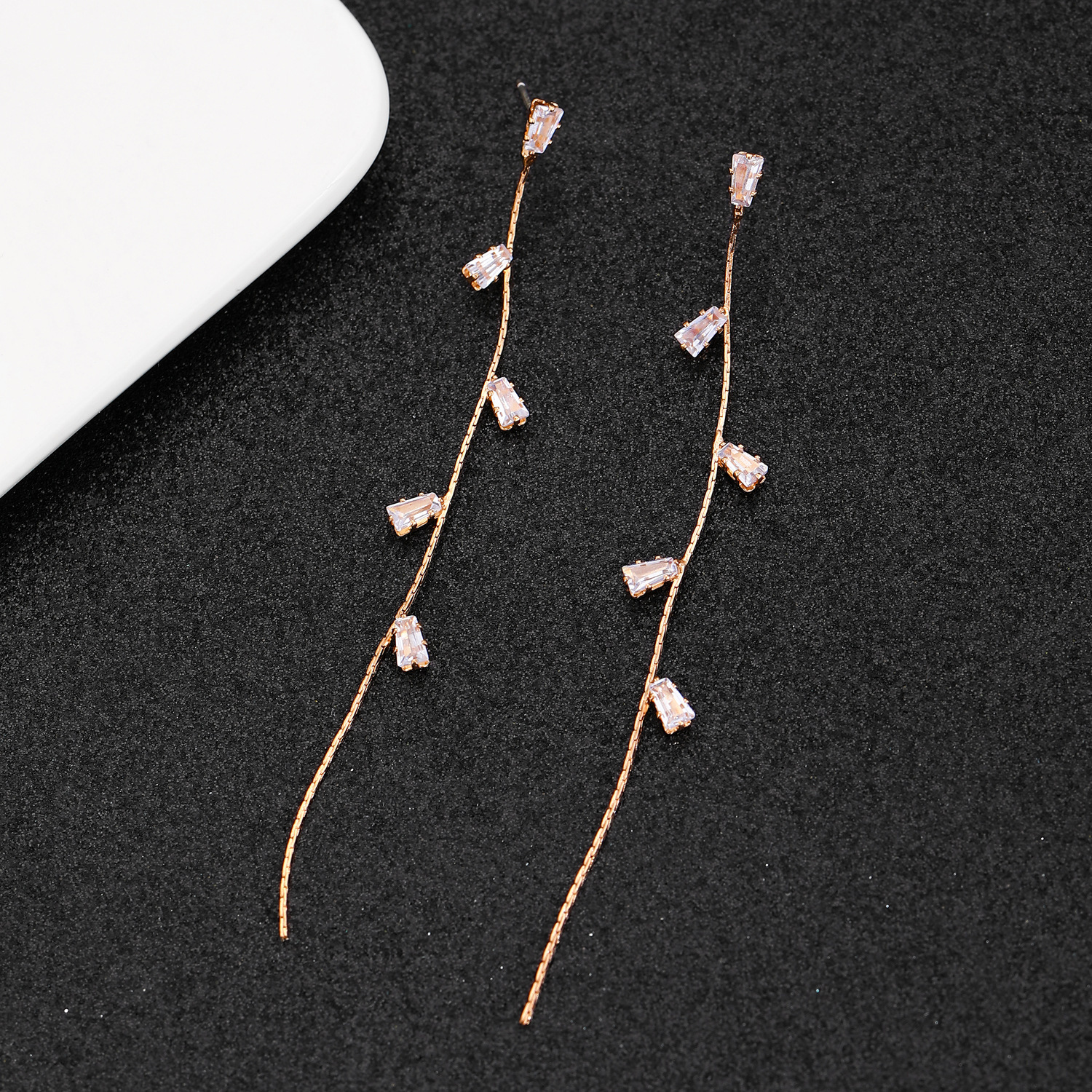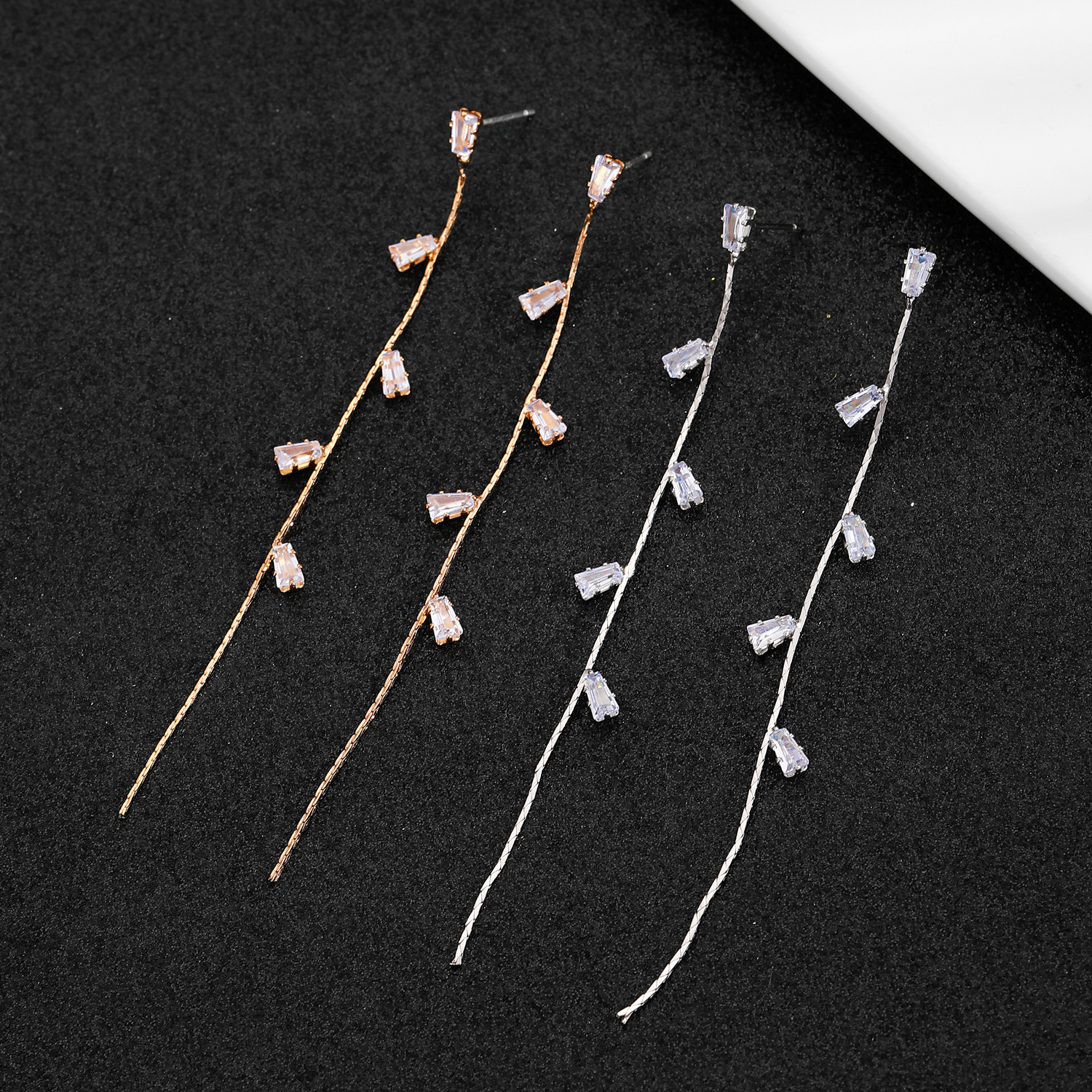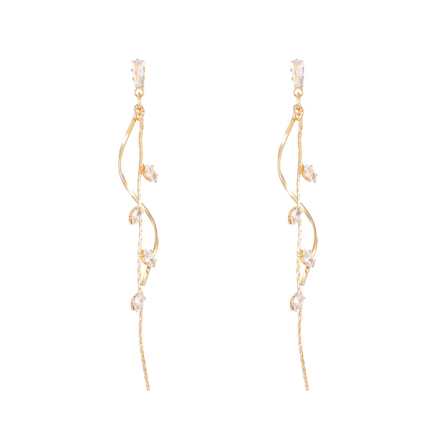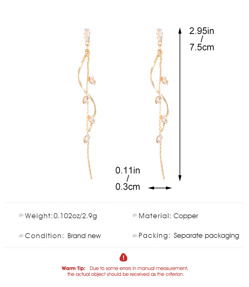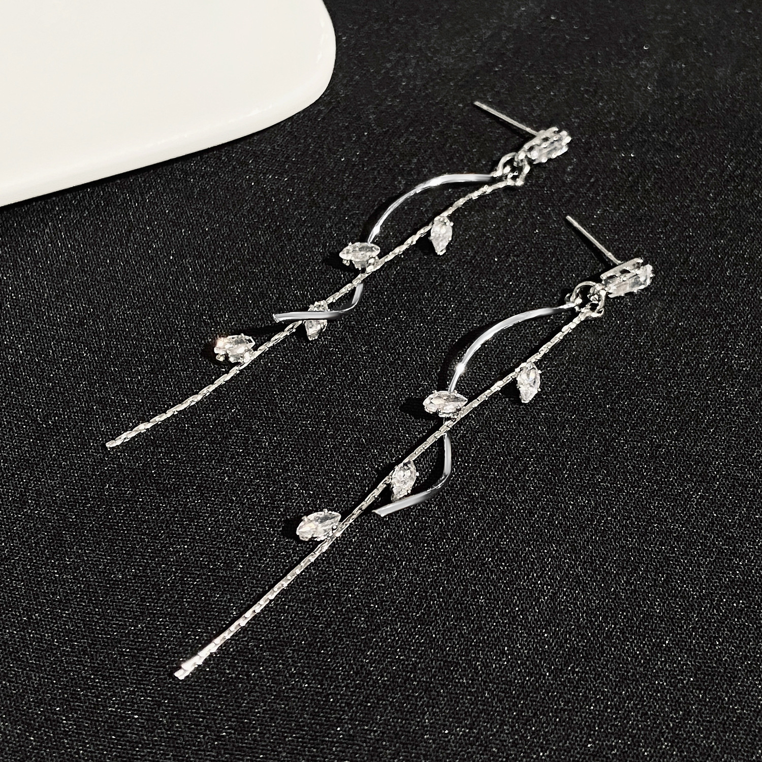 French Style Light Luxury Long Zircon Tassel Earrings Women's Instagram Style European and American Style Elegant Rotating Twisted Earrings Internet Celebrity Earrings