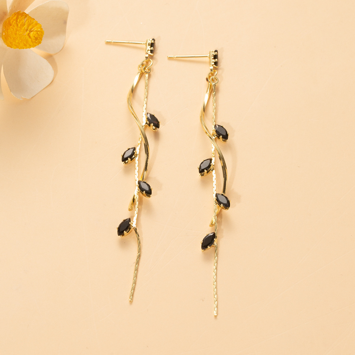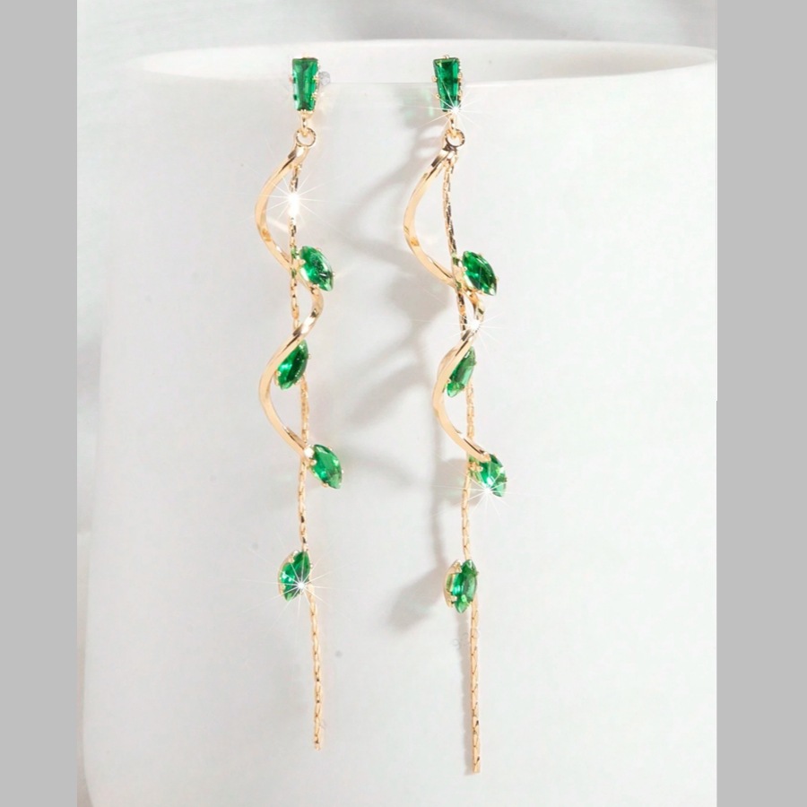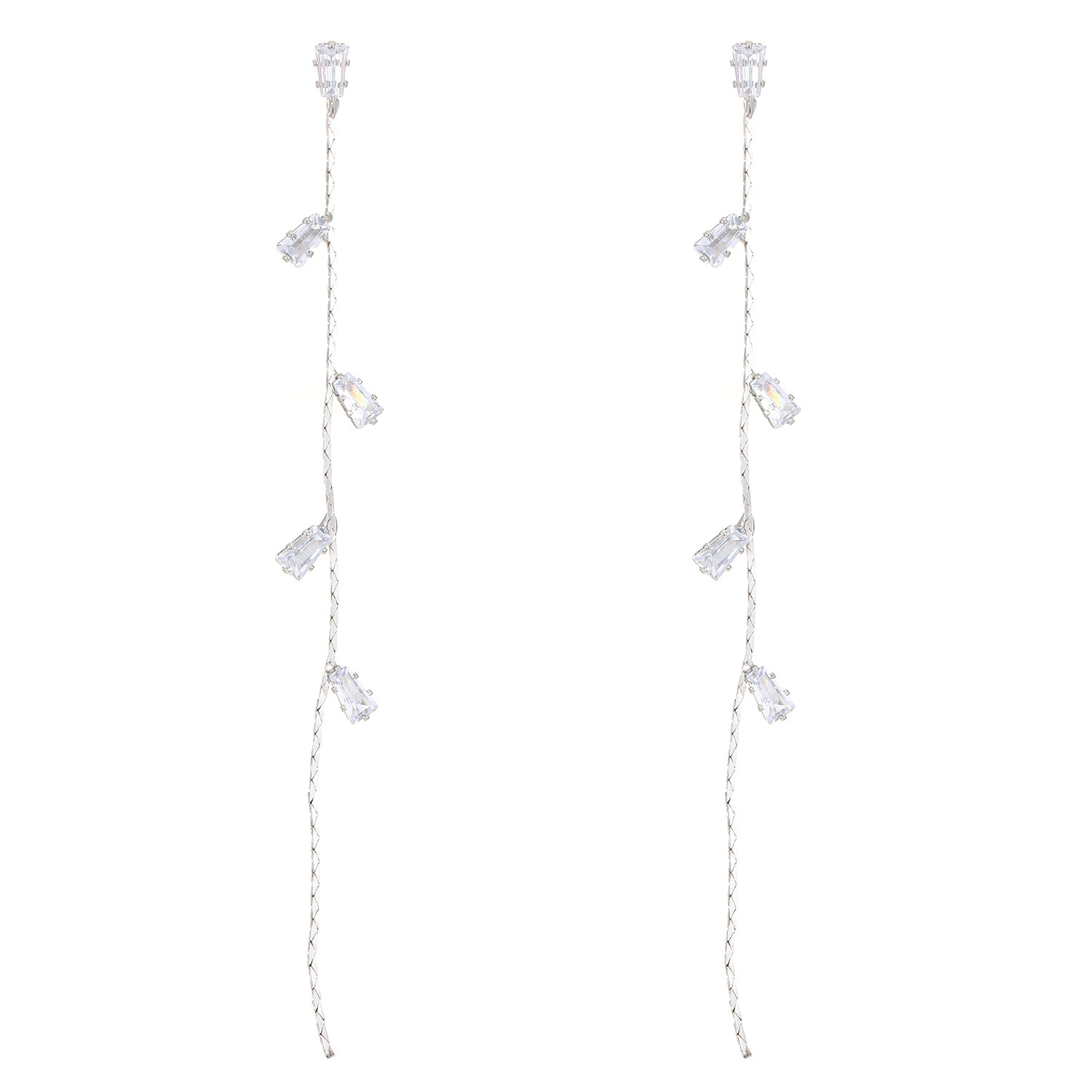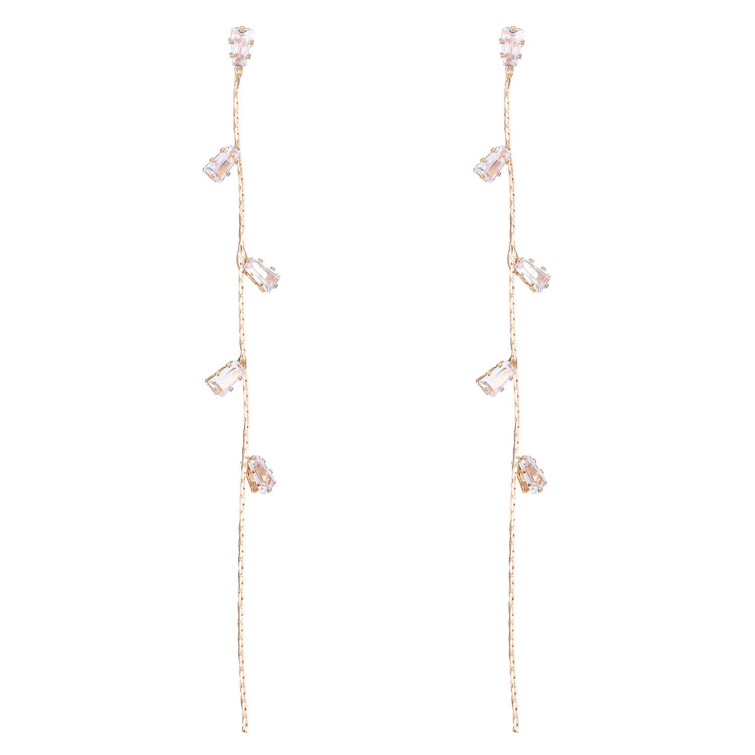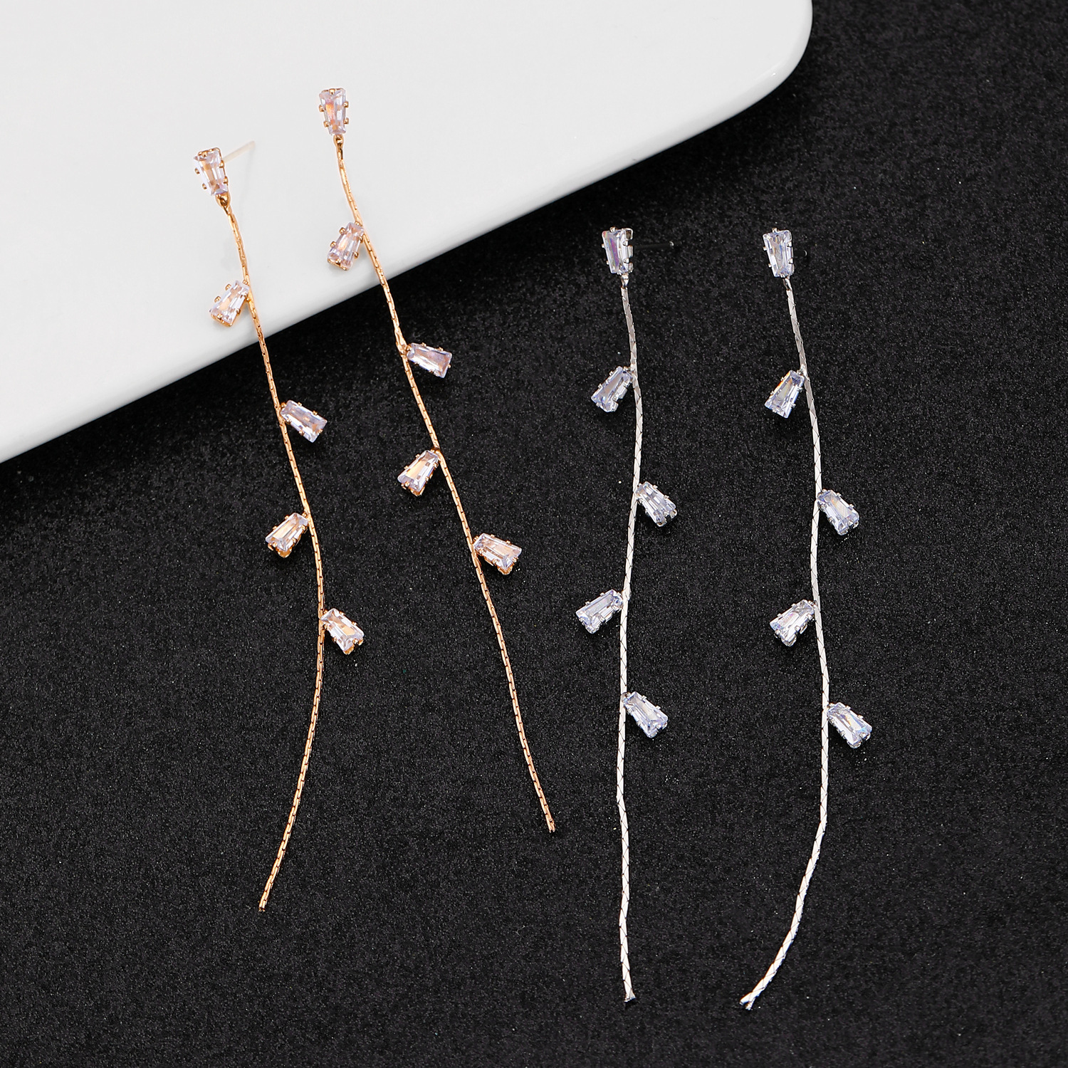 French Style Light Luxury Long Zircon Tassel Earrings Women's Instagram Style European and American Style Elegant Rotating Twisted Earrings Internet Celebrity Earrings