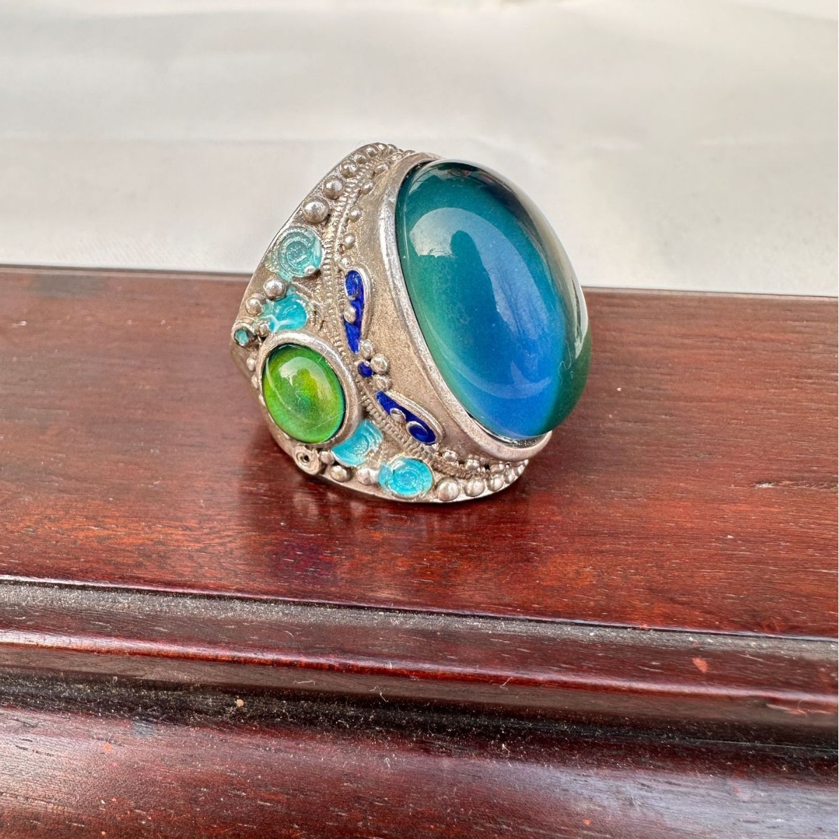 Shape: Vintage cloisonné three-sided ring