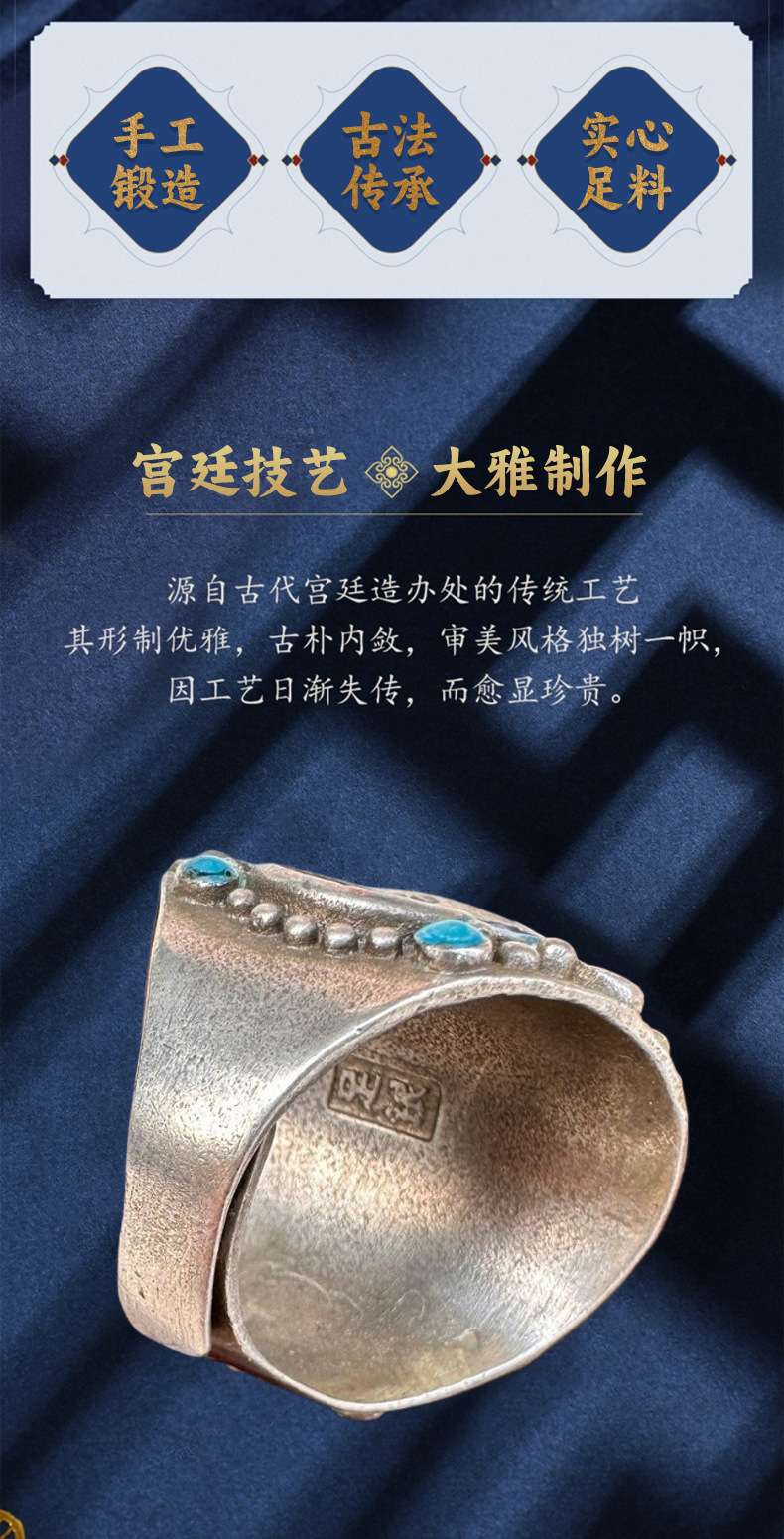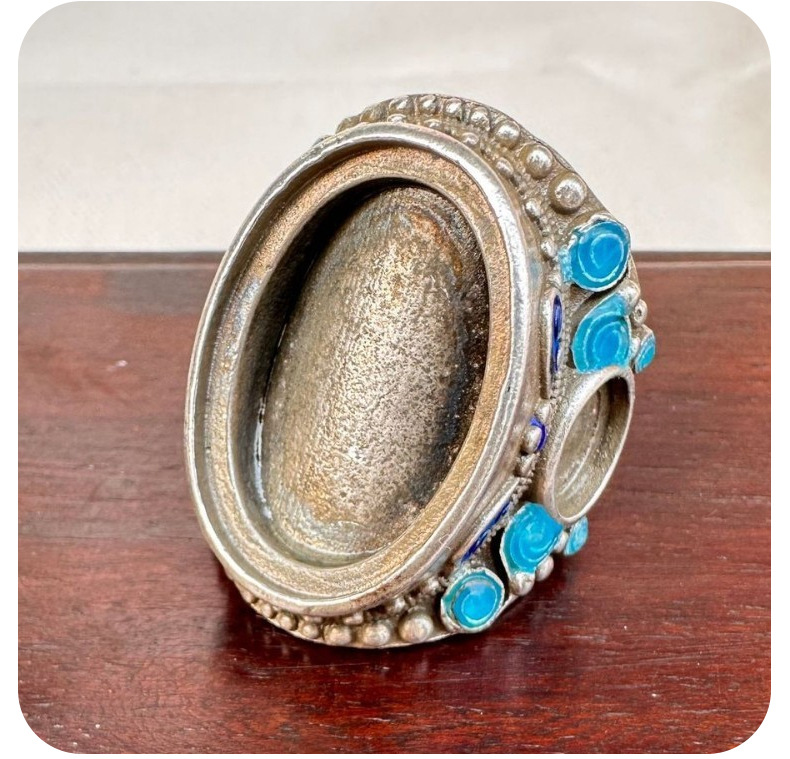 Vintage Cloisonné Ring with Three-Sided Inlay of White Copper, Silver-Plated, Antique Craftsmanship Jewelry, Adjustable Ring for Men and Women