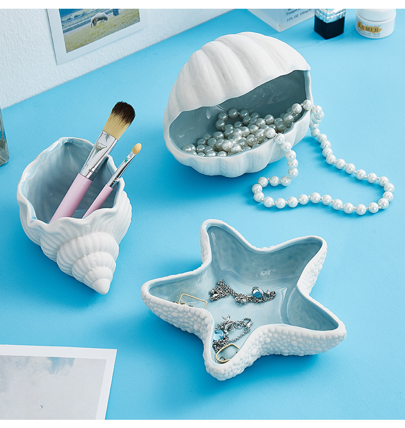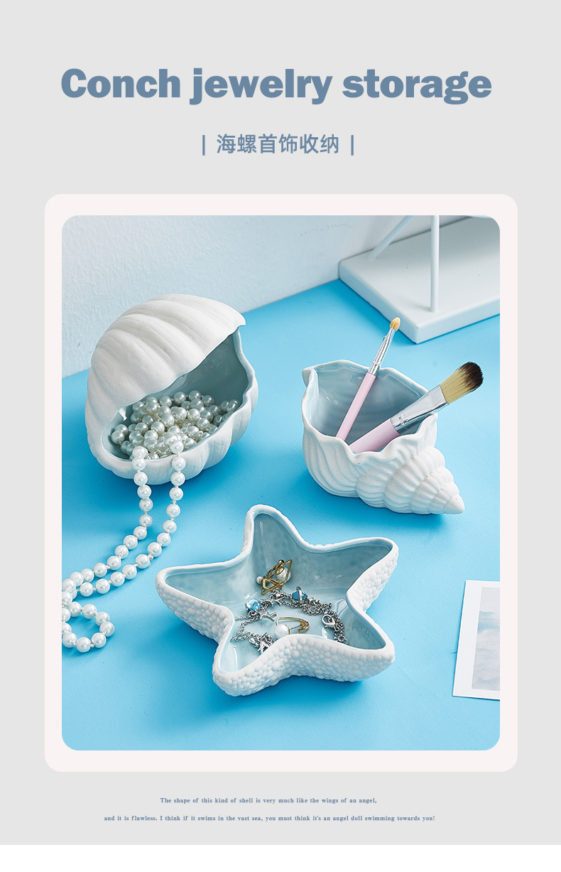 Specification model: Conch ceramic jewelry plate - ocean blue medium; regular