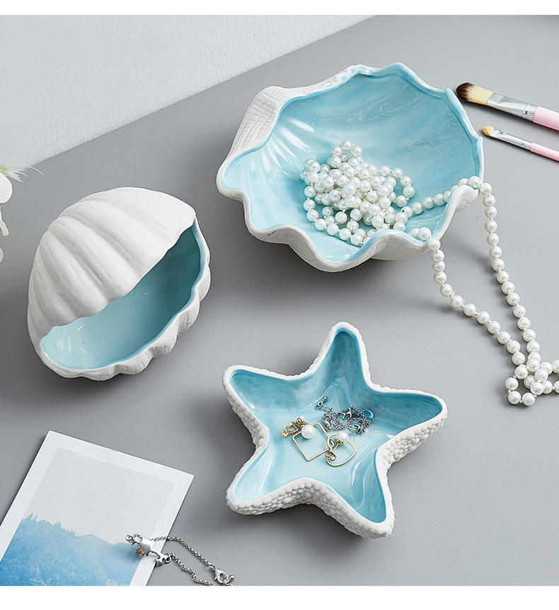 Colour: Shell ceramic jewelry plate-sea blue large size