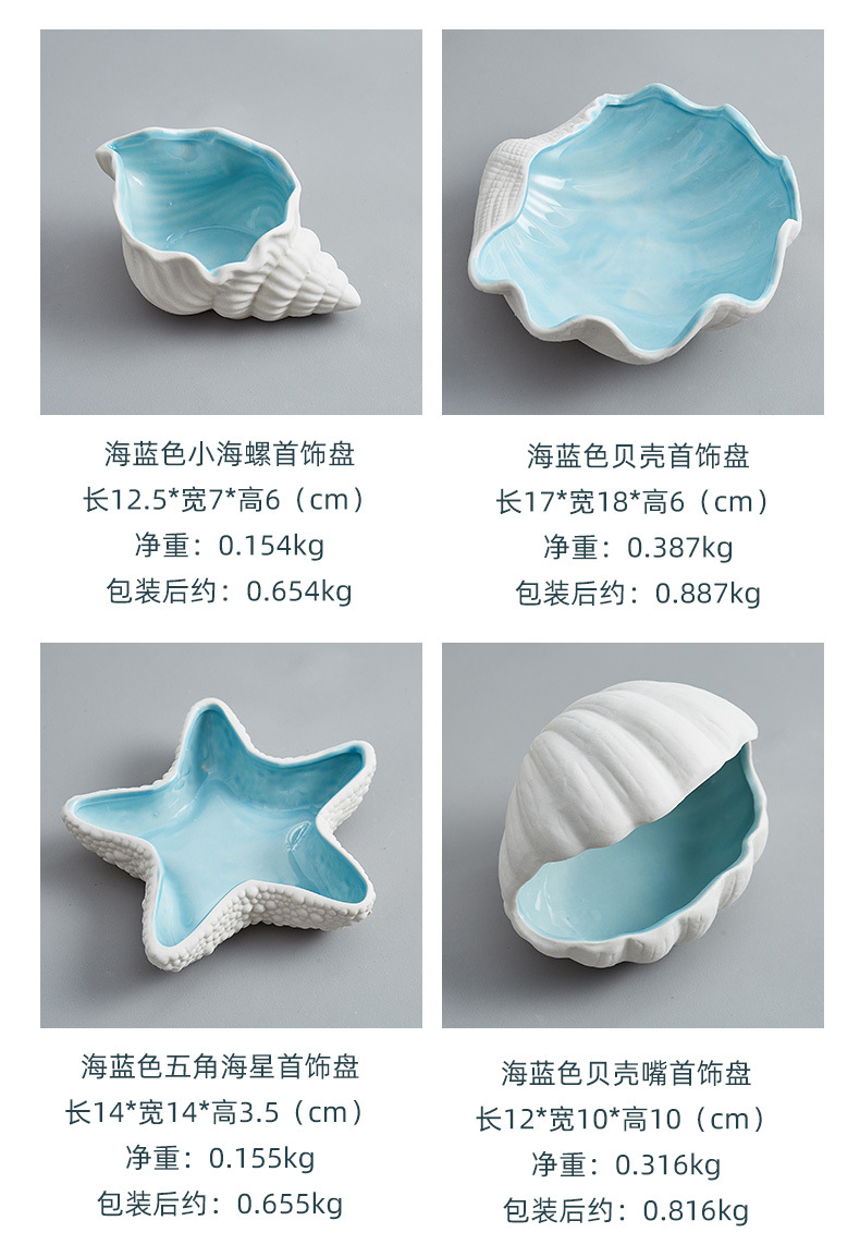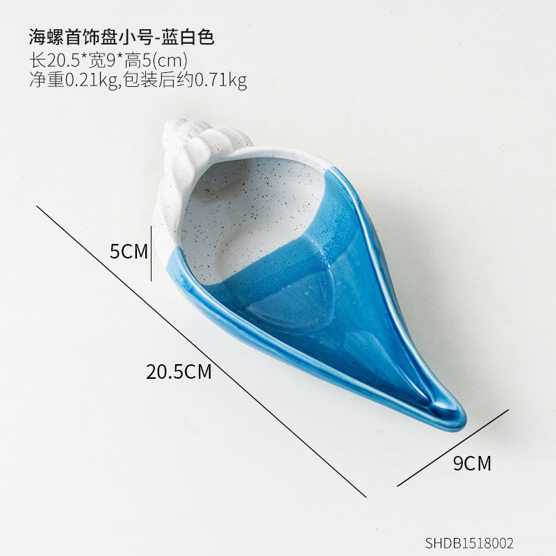 Specification model: Conch ceramic jewelry plate - ocean blue large; regular