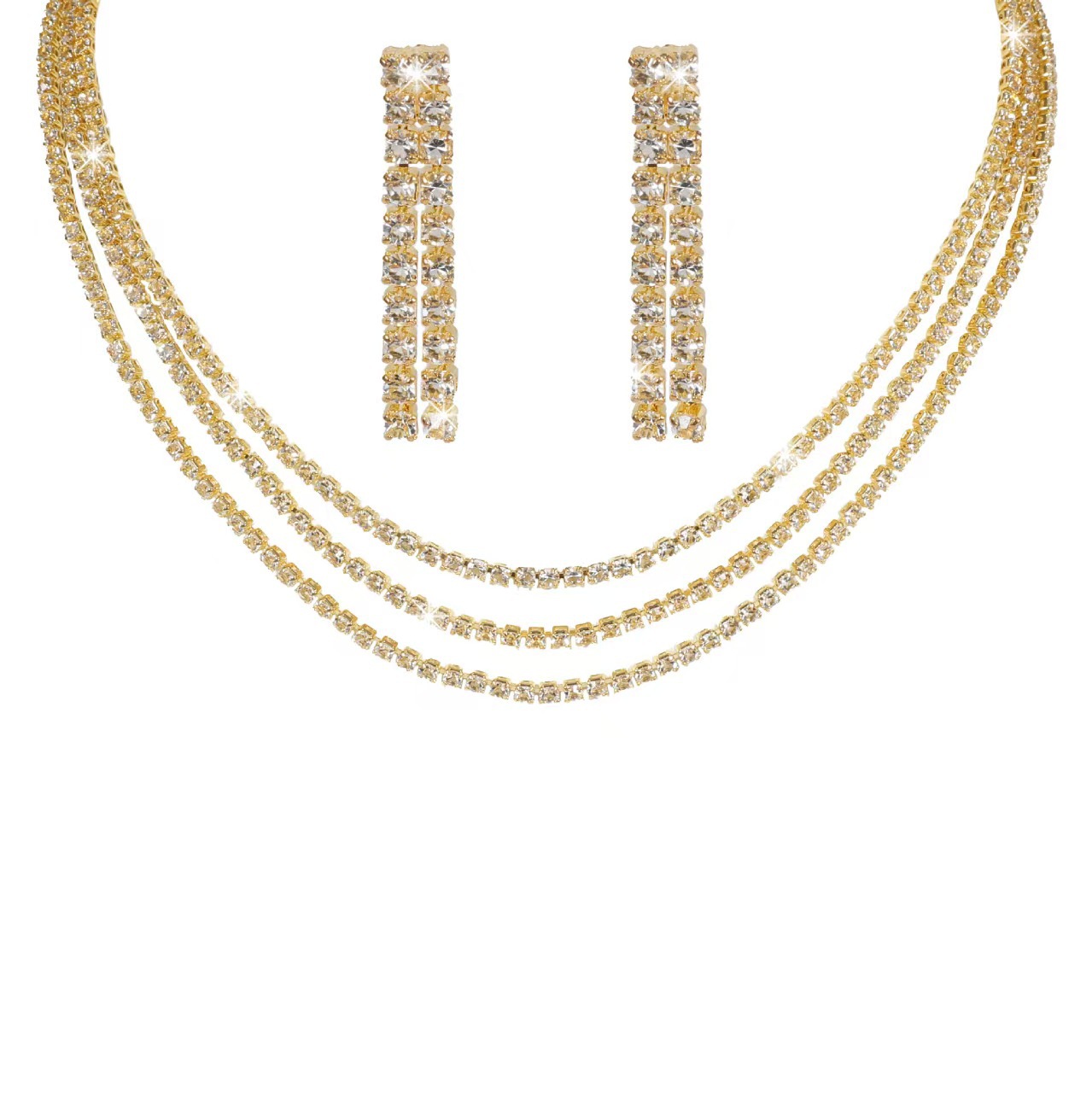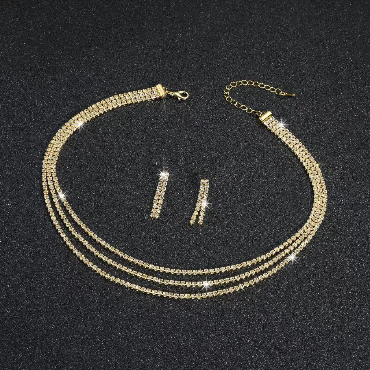 Foreign Trade Necklace Two-Piece Set Korean Popular Bride Necklace Jewelry Necklace Earrings Rhinestone Claw Chain Jewelry suit