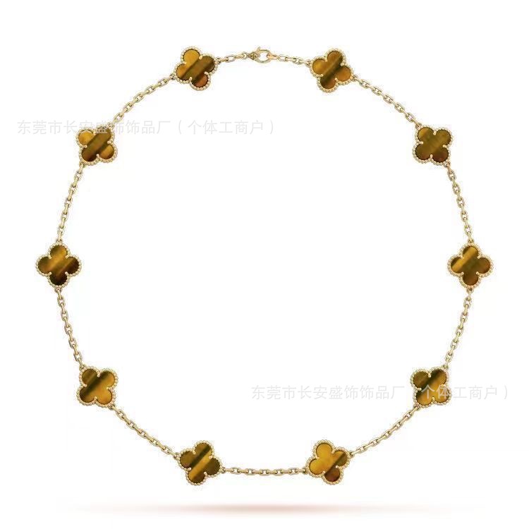 Colour: 10 flower diamond tiger eye stone necklace