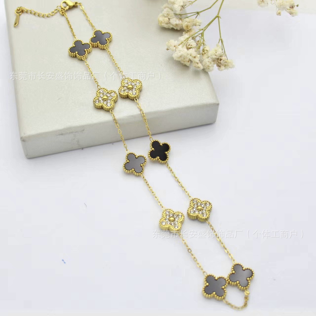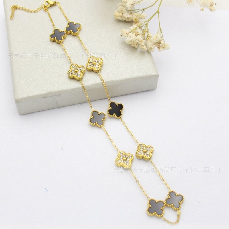 Colour: 10 flower diamond black shell necklace