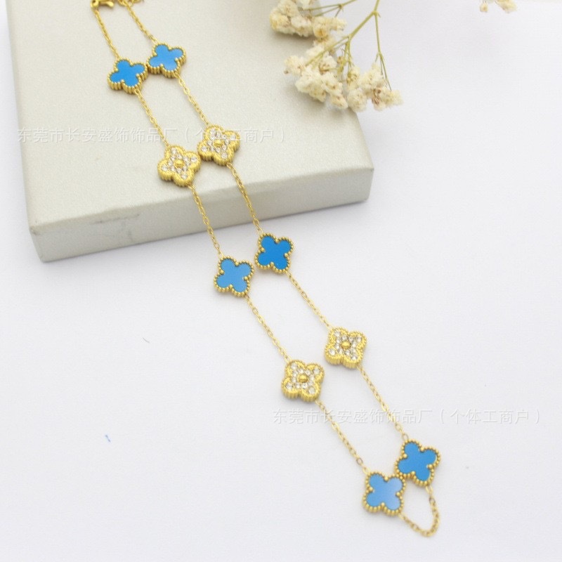 Colour: 10 flower diamond blue shell necklace