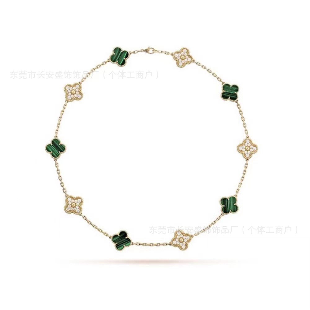Colour: 10 flower diamond green shell necklace