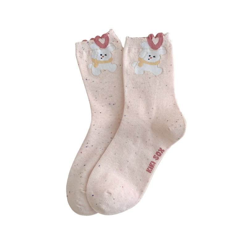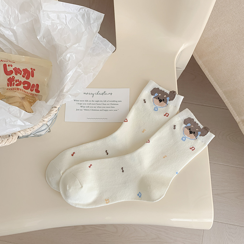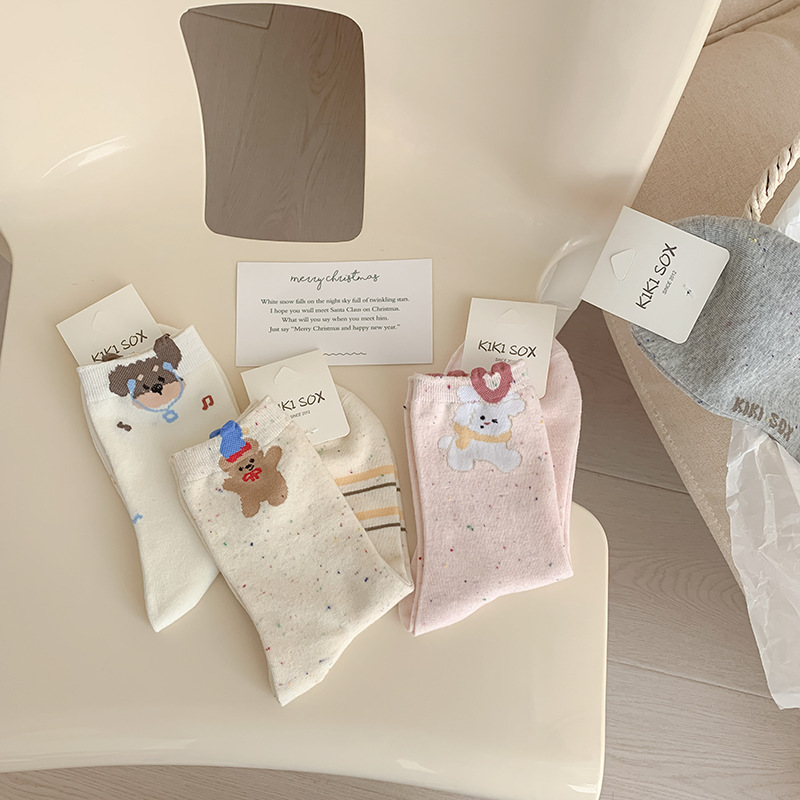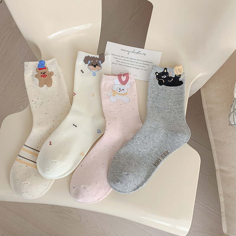 Cute Socks for Women, Pure Cotton, Autumn and Winter Style, Mid-Calf Socks, Cartoon Pattern Yarn, Seamless, Korean Style, Trendy Ins Socks for Women, Spring and Autumn
