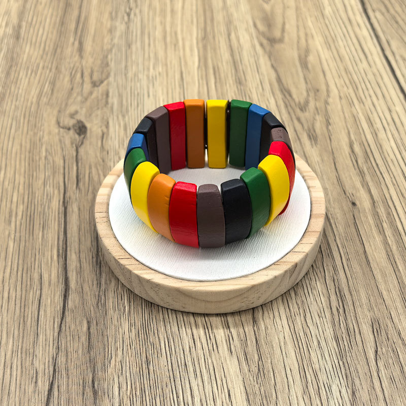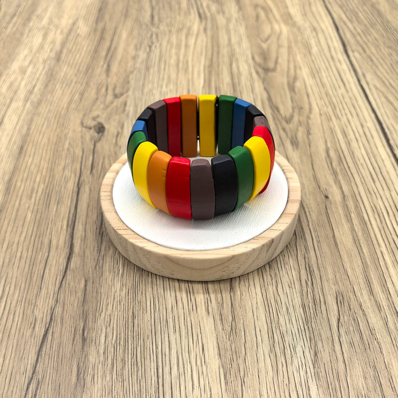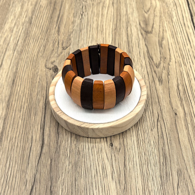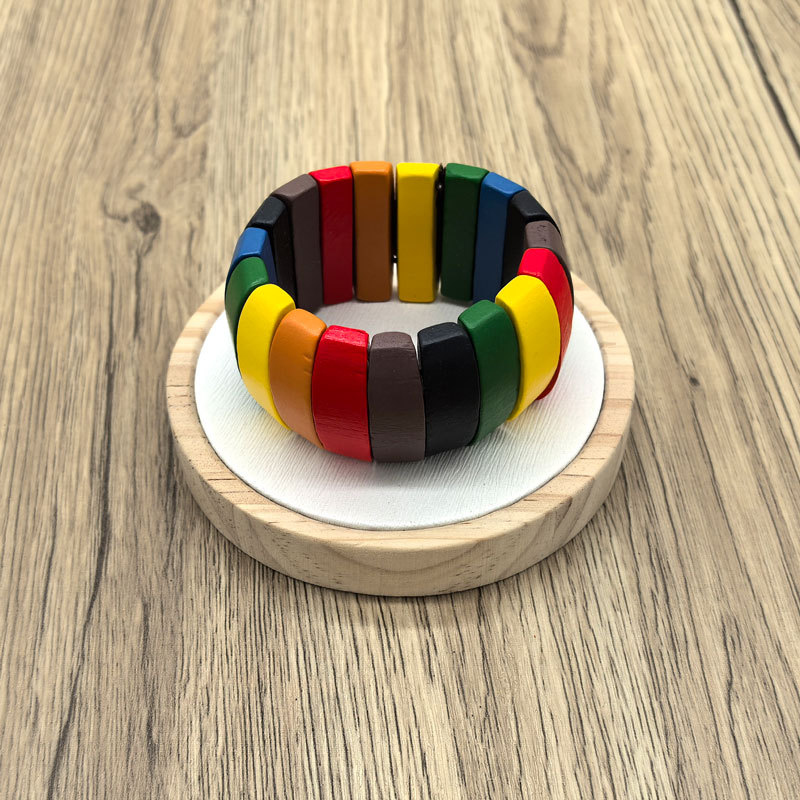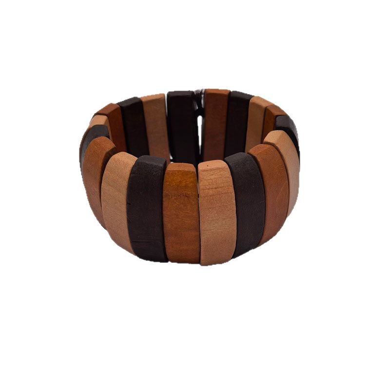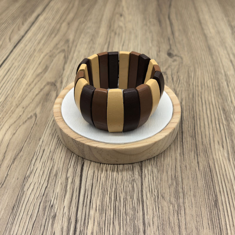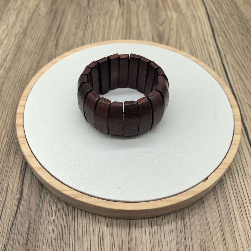 European and American Retro Ethnic Style Colorful brown Woven Elastic Bracelet for Women Geometric Bohemian Wooden Beaded Bracelet