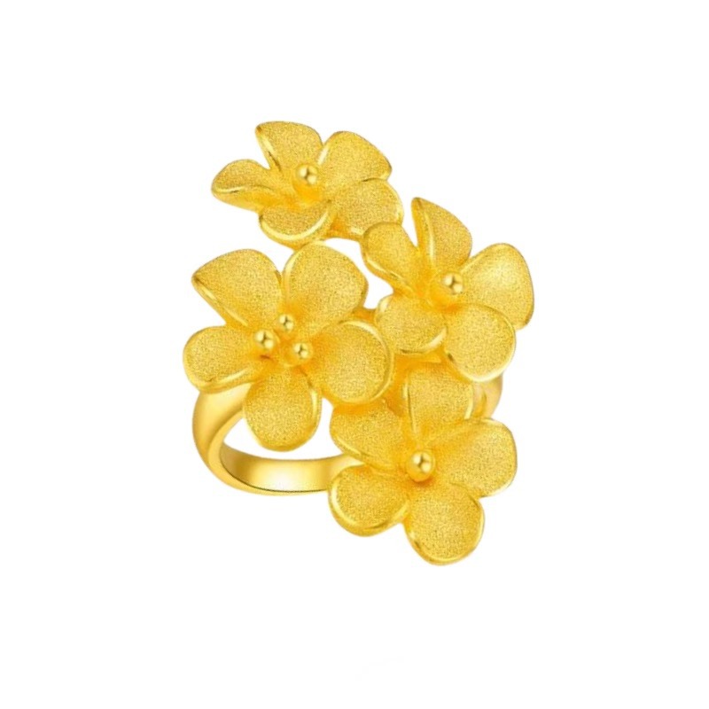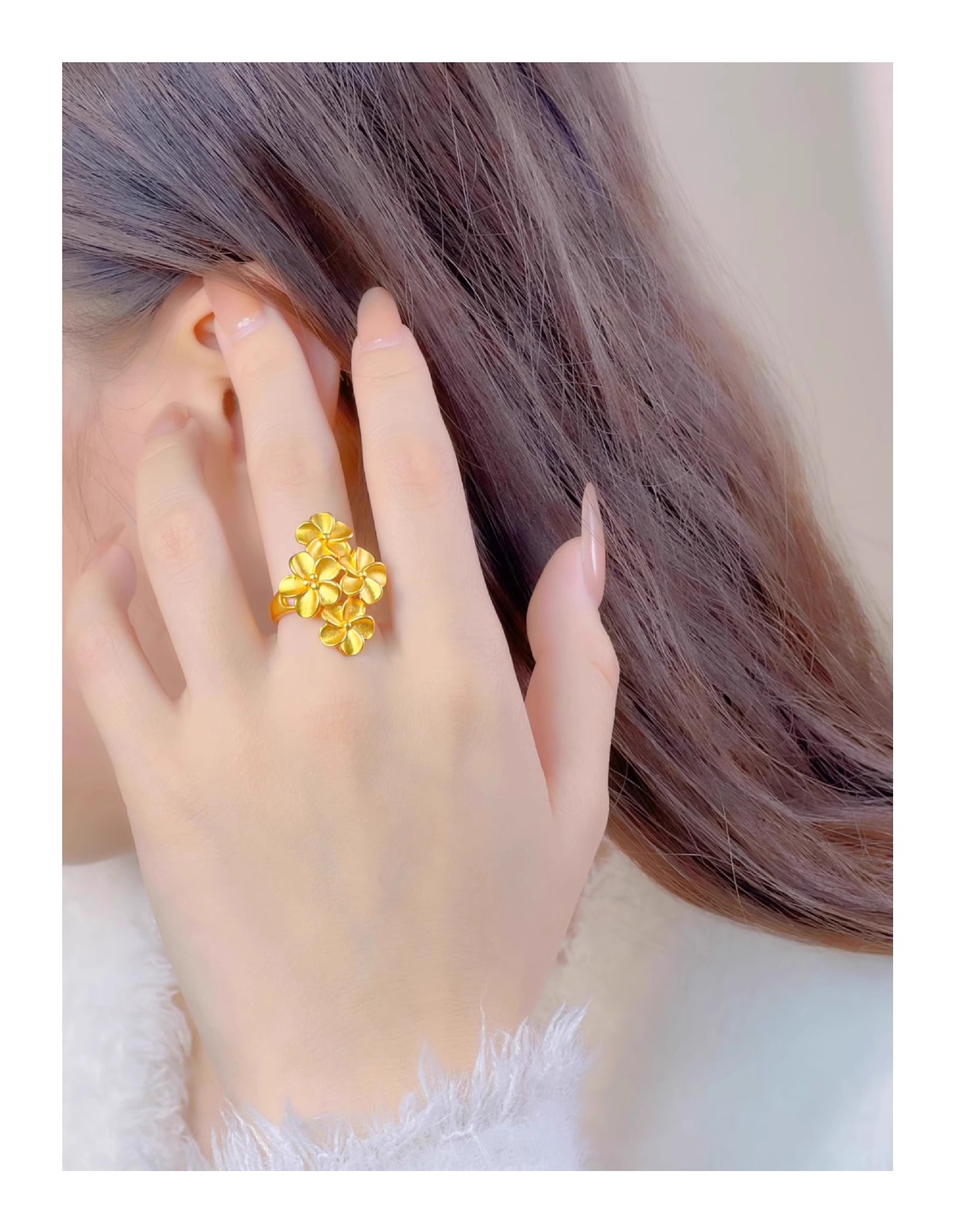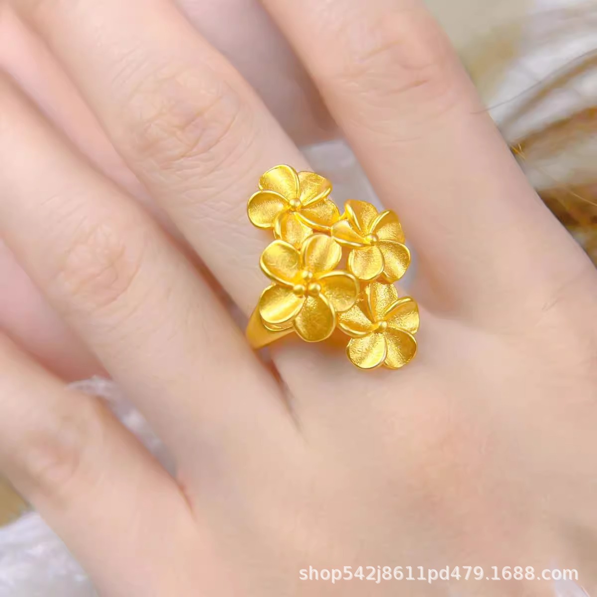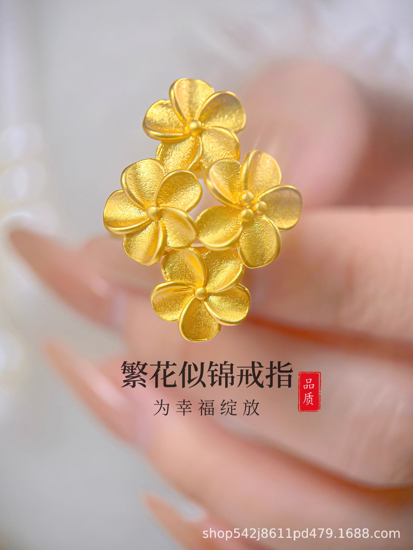 New gold-plated flower-like brocade-plated gold-plated opening ring adjustable living mouth wedding simulation three-gold photo jewelry