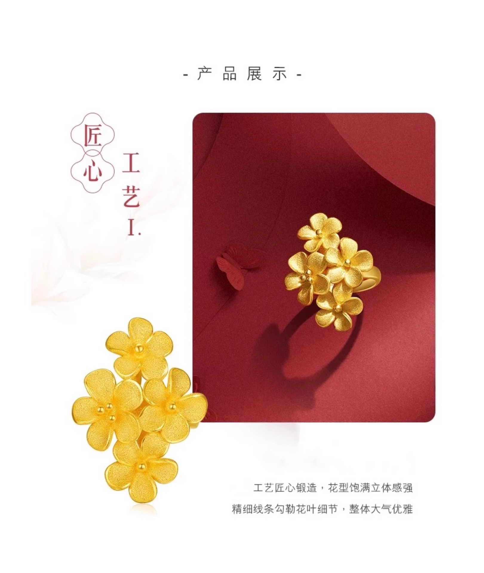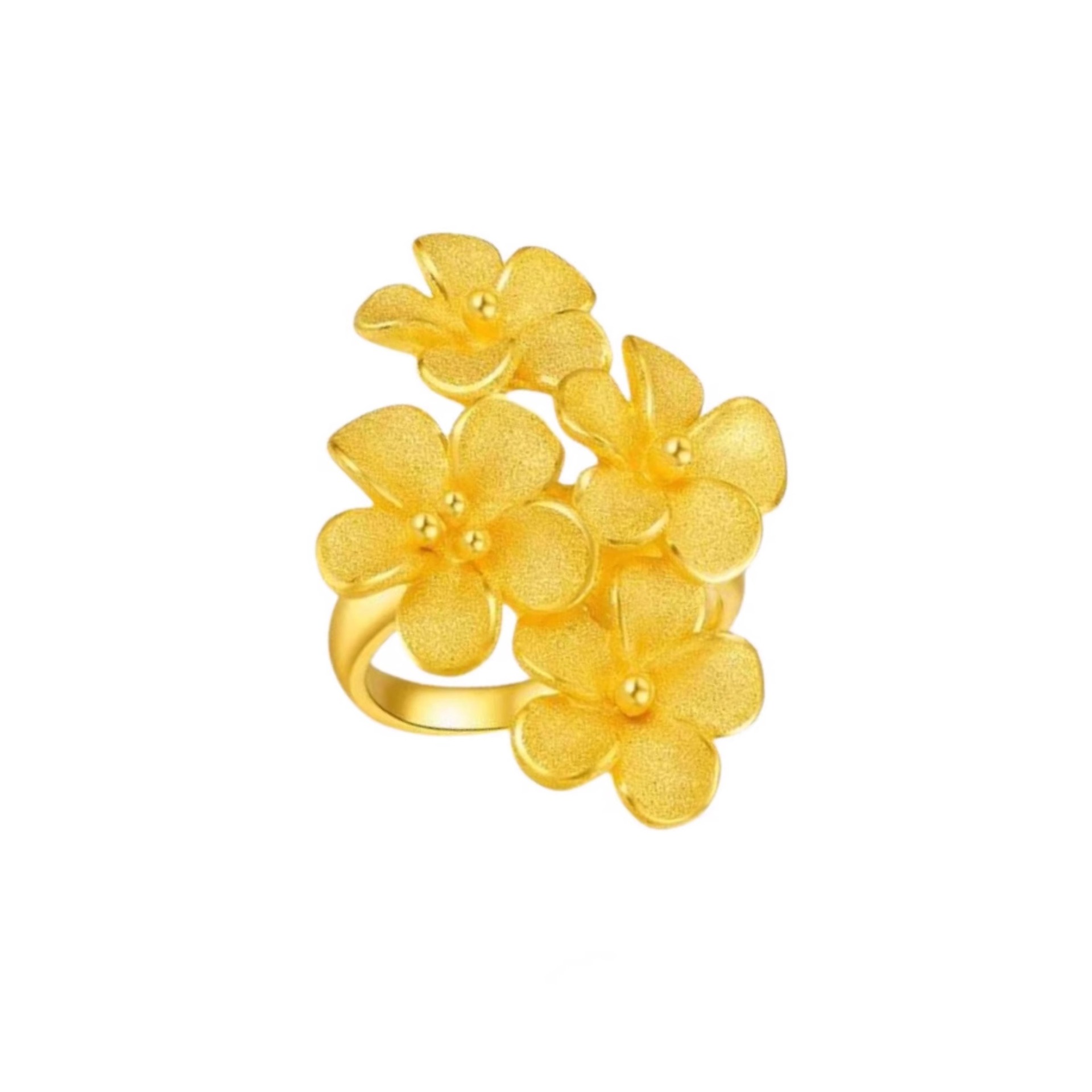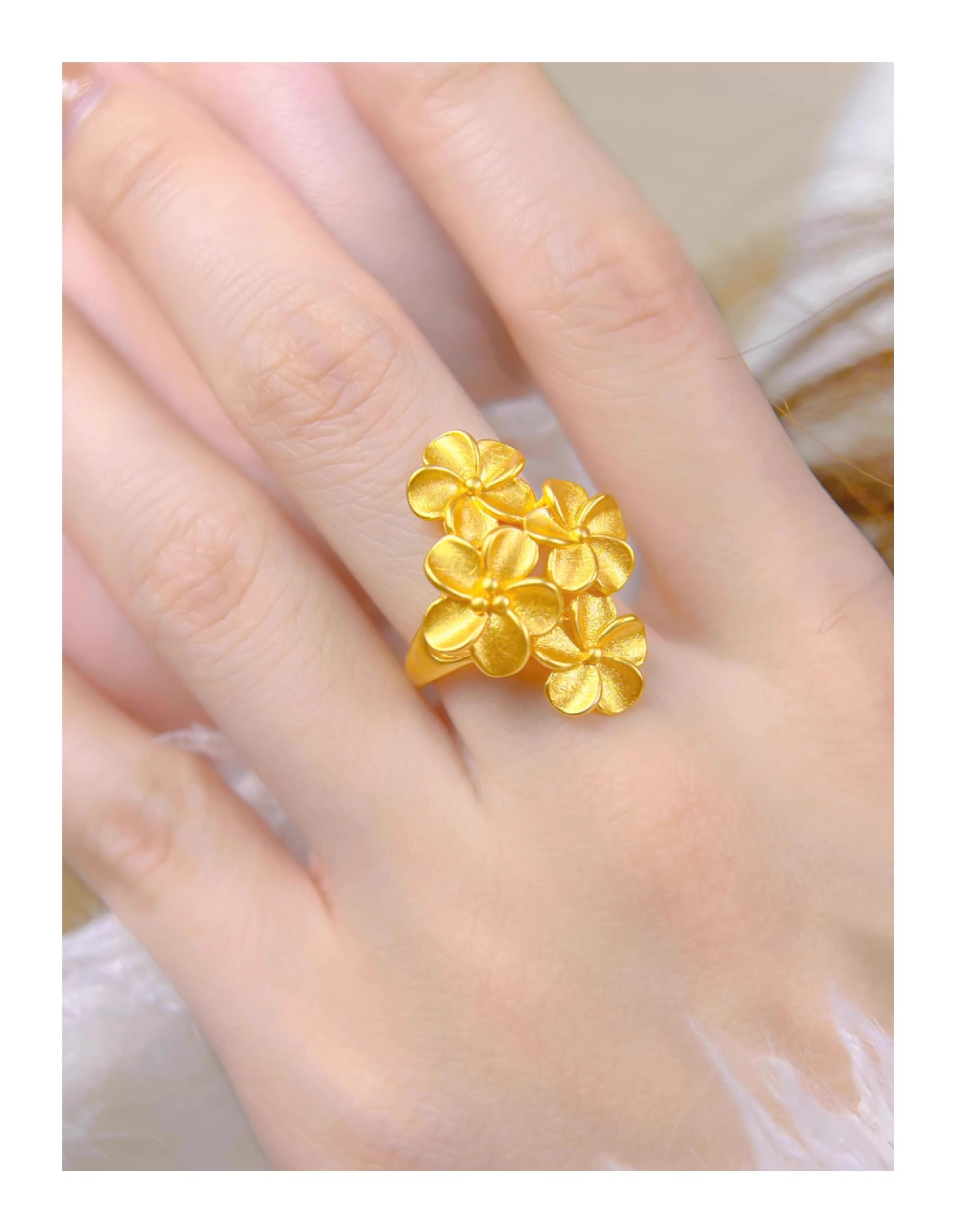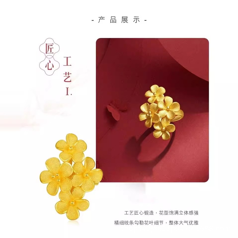 New gold-plated flower-like brocade-plated gold-plated opening ring adjustable living mouth wedding simulation three-gold photo jewelry