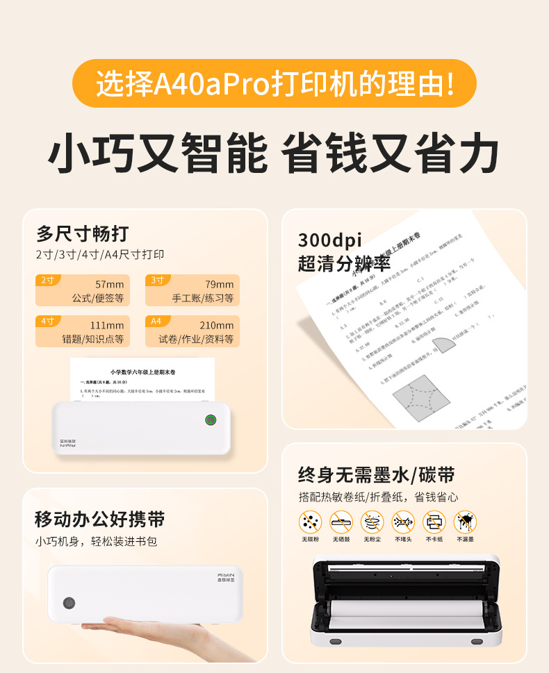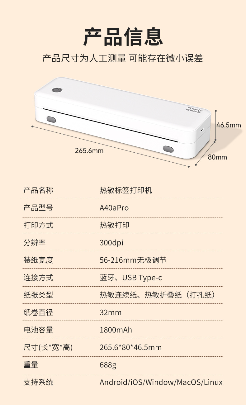 Model: [203-point ultra-clear version] a40pro [mobile phone bluetooth + computer connection usb] package comes with 2 rolls of thermal paper