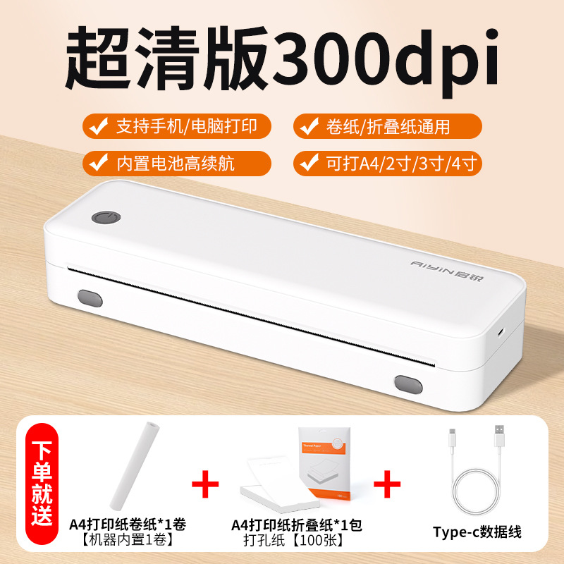 Model: [300-point ultra-clear version] a40pro [mobile phone bluetooth + computer connection usb] - package with 100 pieces of folding thermal paper