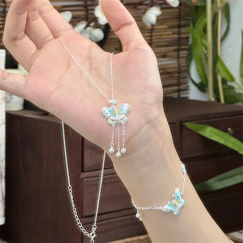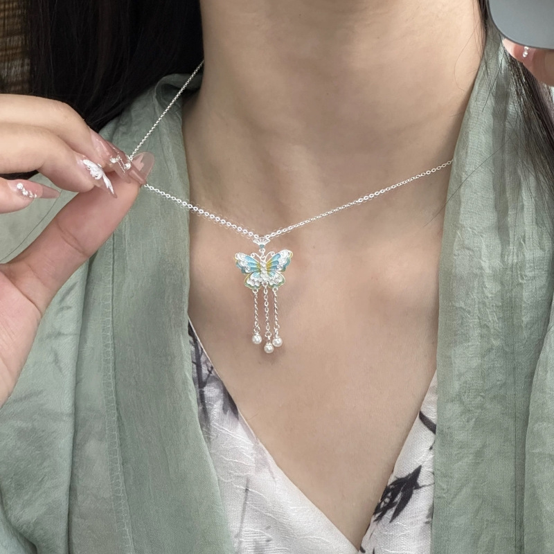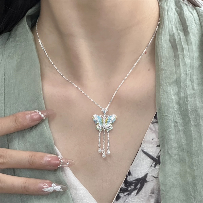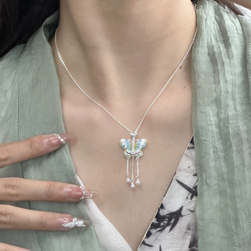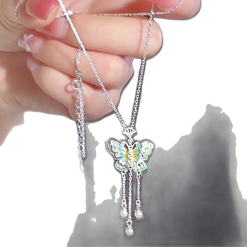Colour: A blue butterfly necklace