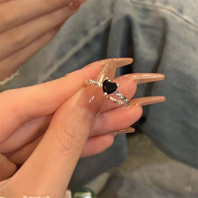 Cool feeling ~ black love ring female ins cold wind niche high-end sweet cool wind fashion ring
