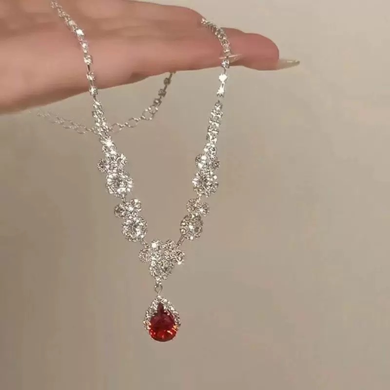 Color: Red water drop necklace