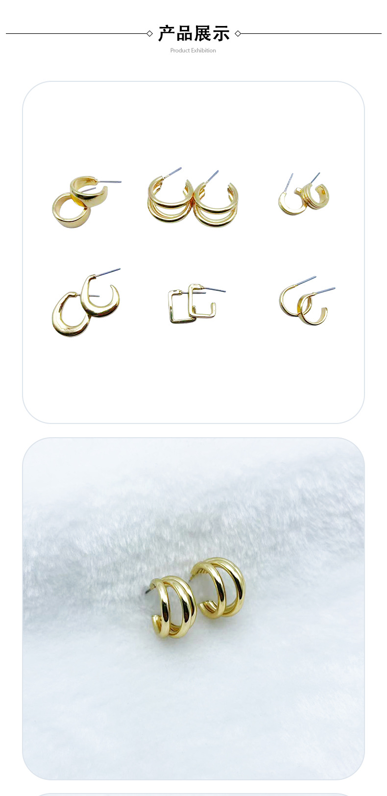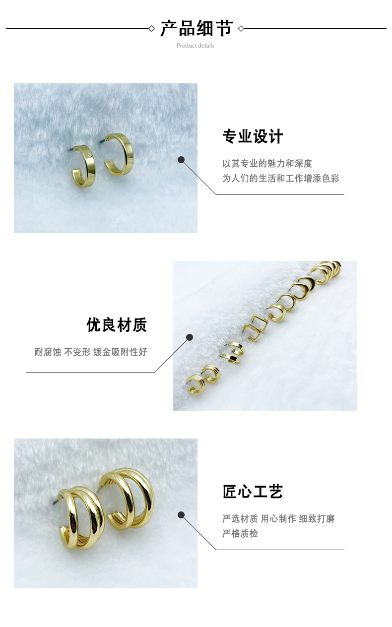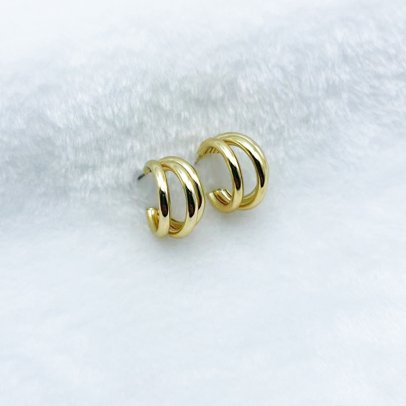 Cold Wind Earrings Metallic Simple Elegant Three-layer Circle Earrings Copper Plated Earrings Women's Internet Celebrity Elegant in stock