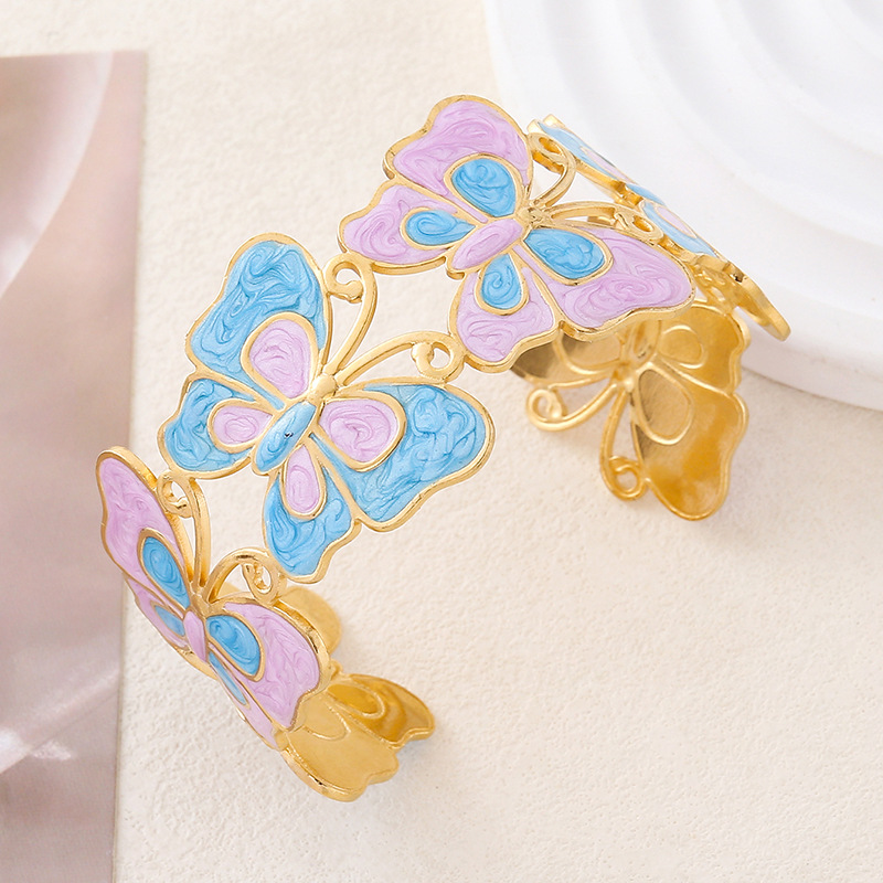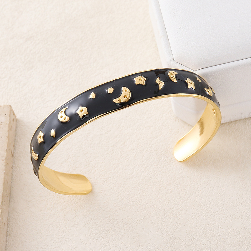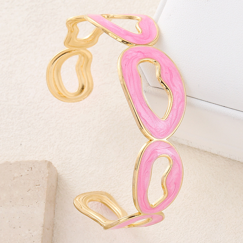 Europe and the United States cross-border new stainless steel oil drop oil painted open bracelet exaggerated women plating 18K gold bracelet wholesale