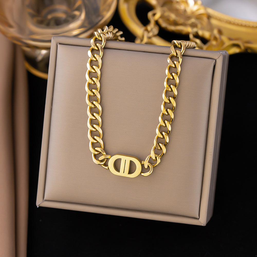 Color: 81173-golden four-leaf clover lip chain double-sided