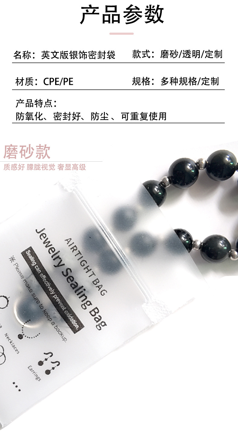 Specifications and models: English version + silver jewelry bag; frosted: 10*12cm (100 pcs/pack 15 silk)